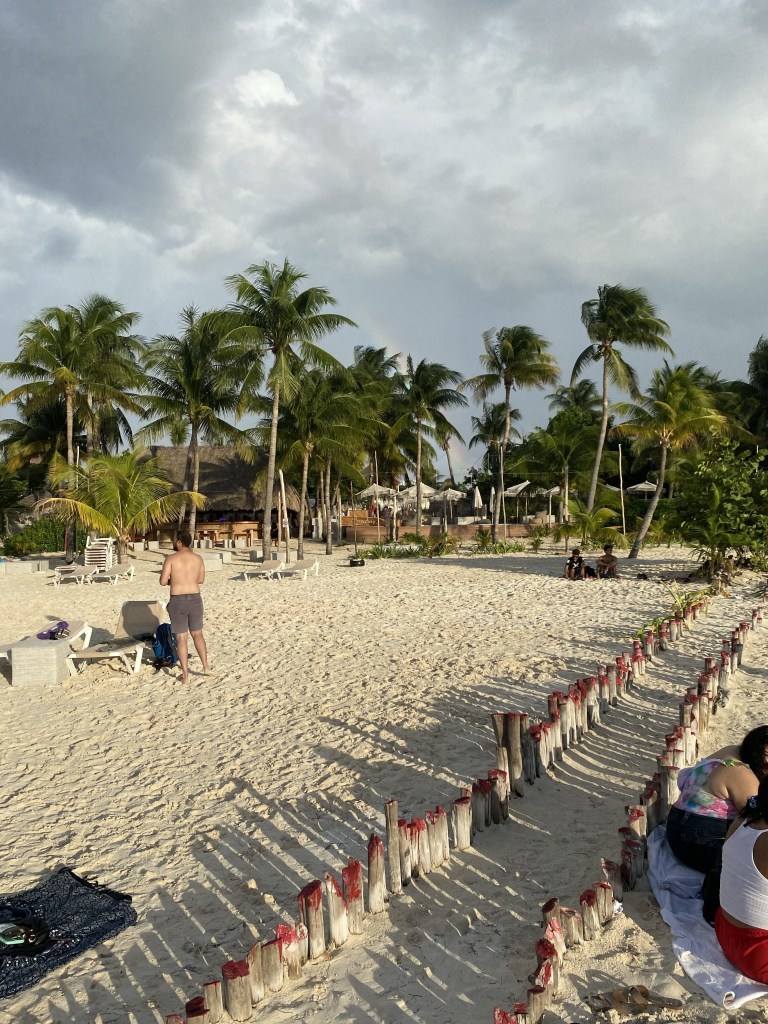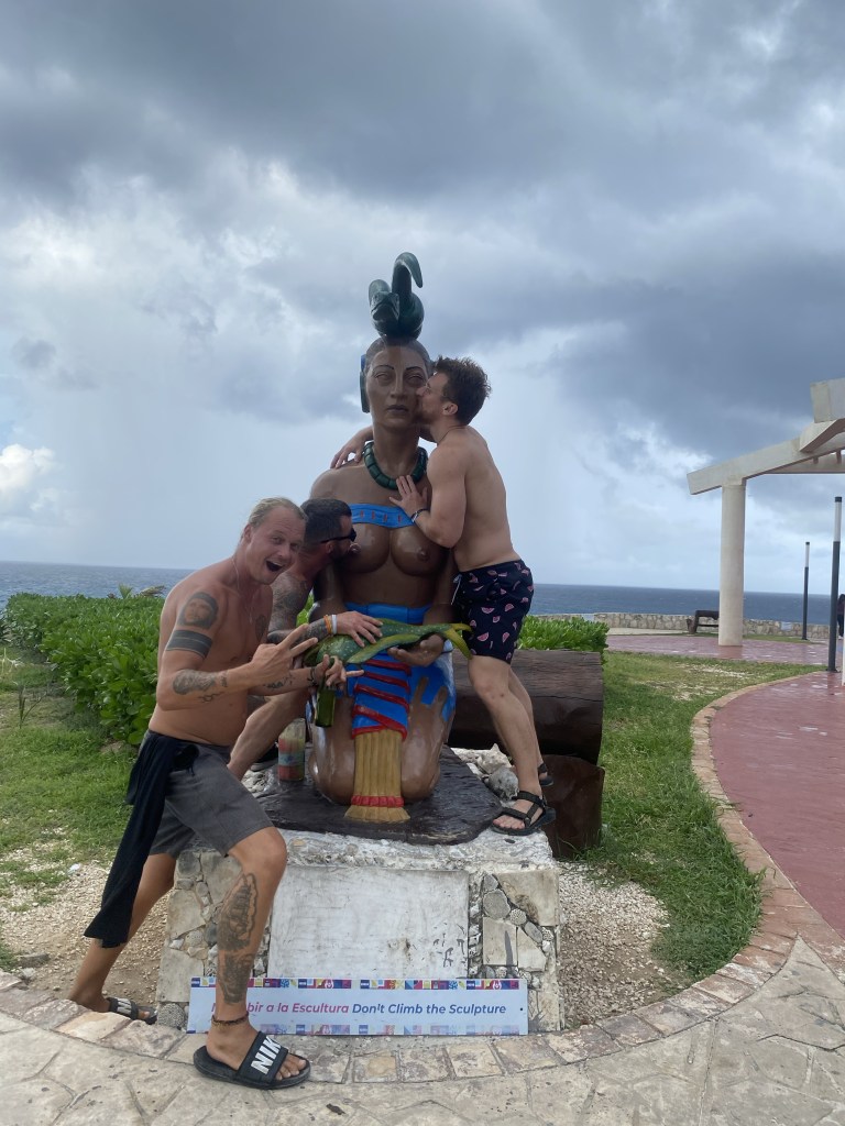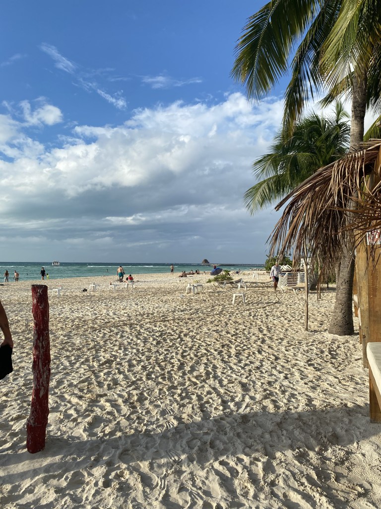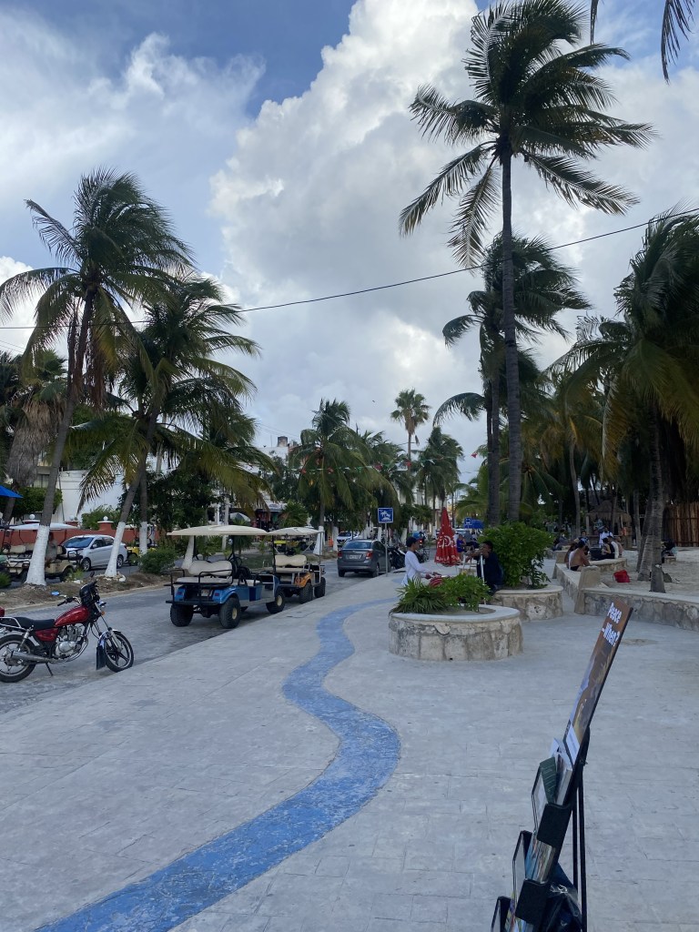 Das Essen war wieder einmal einmalig. Wir haben hier zu dritt bestimmt 2 Stunden gesessen und Jessi, so hieĂ die Frau, hat mir viel aus ihrem Leben erzĂ€hlt. Sie hat echt schon einiges erlebt und ich habe ihr gerne zugehört. Ihr Bruder Ricky ist auch ein cooler Typ. Allgemein waren beide sehr aufgeschlossen und nett und freundlich. Er geht auch gerne Trainieren und sobald ich ihm erzĂ€hlt habe was ich studiert habe war er ganz hellwach und hat mich erstmal seinen Trainingsplan durchchecken lassen, den sein Trainer fĂŒr ihn gemacht hat. Der Plan war gut und sein Trainer hat sich gefreut, dass ich den Plan abgesegnet habe đ . Wir haben uns ĂŒberlegt, dass wir uns gemeinsam ein kleinen Goldcaddy leihen könnten und damit die Insel erkundschaften. Diese Dinger kann man im Hostel direkt fĂŒr 80 Euro fĂŒr 24h mieten. Und zu dritt war das dann auch ein fairerer Preis. ZurĂŒck im Zimmer war dann noch ein weiterer Typ, sein Name war Chris, und nach ein paar Minuten GesprĂ€ch stellte sich heraus, dass die Amerikaner und Chris gemeinsame Freunde in deren Heimat waren. Alles ziemlich kurios đ . Chris reist seit vielen Jahren umher und hat schon viel von der Welt gesehen. Er kommt immer mal wieder auf Isla Mujeres zurĂŒck, da es ihm hier gut gefĂ€llt. Demnach kennt er hier jede Ecke und hatte einen Haufen Tips fĂŒr uns wo wir gĂŒnstig essen können, wo die besten StrĂ€nde zu finden sind und so weiter. Er hat sich dann auch angeboten, dass er mit auf unsere Tour mit dem Caddy kommt und somit hatten wir den besten Tourguide der Insel mit an Bord.
