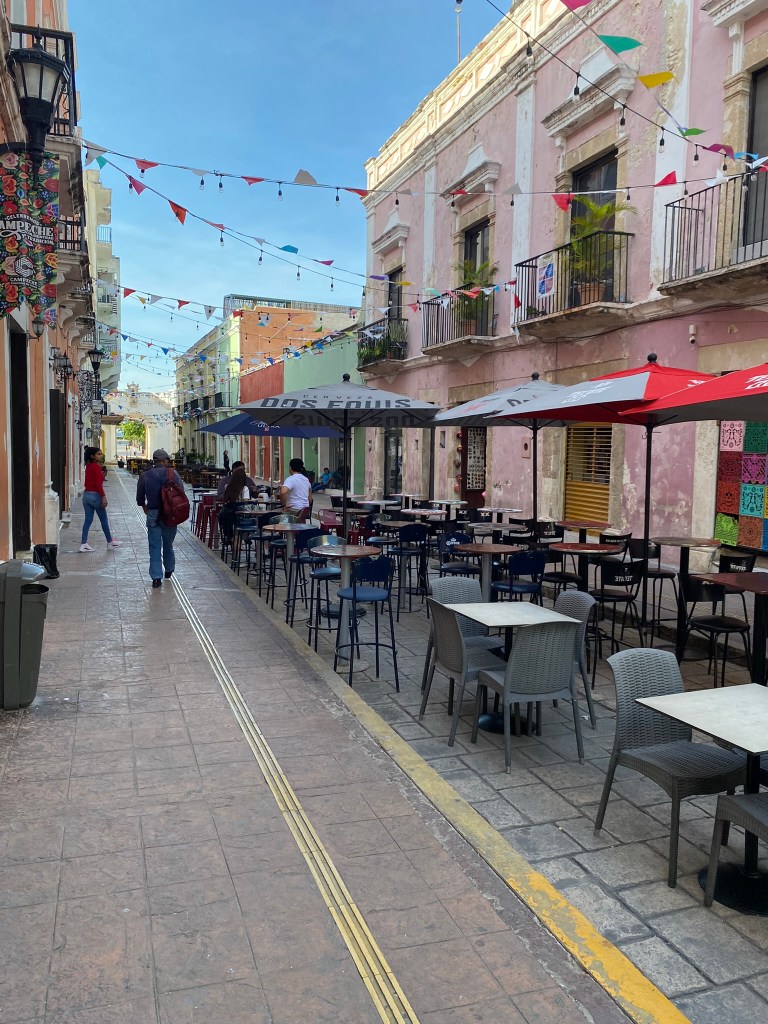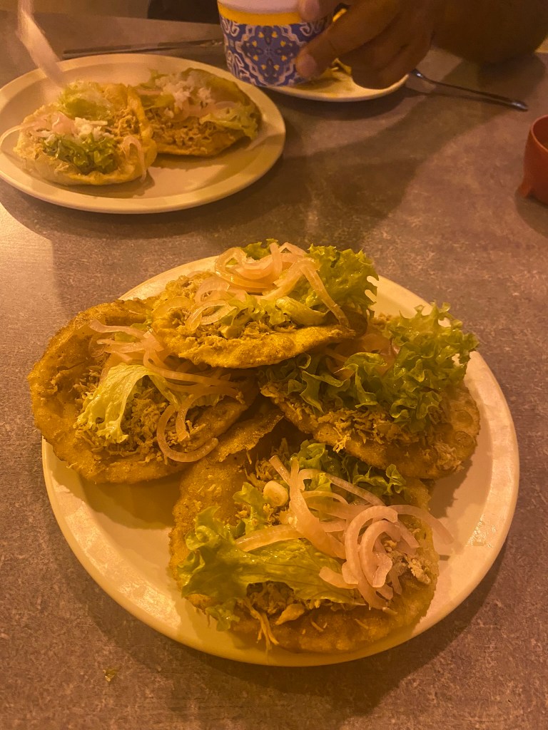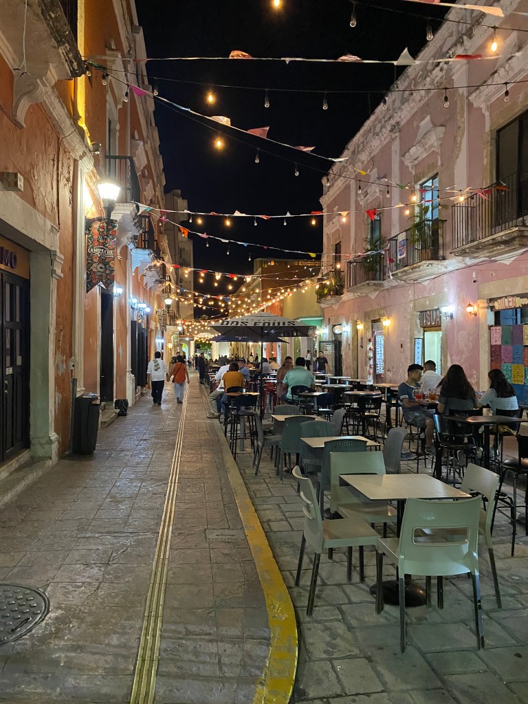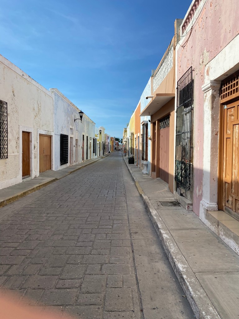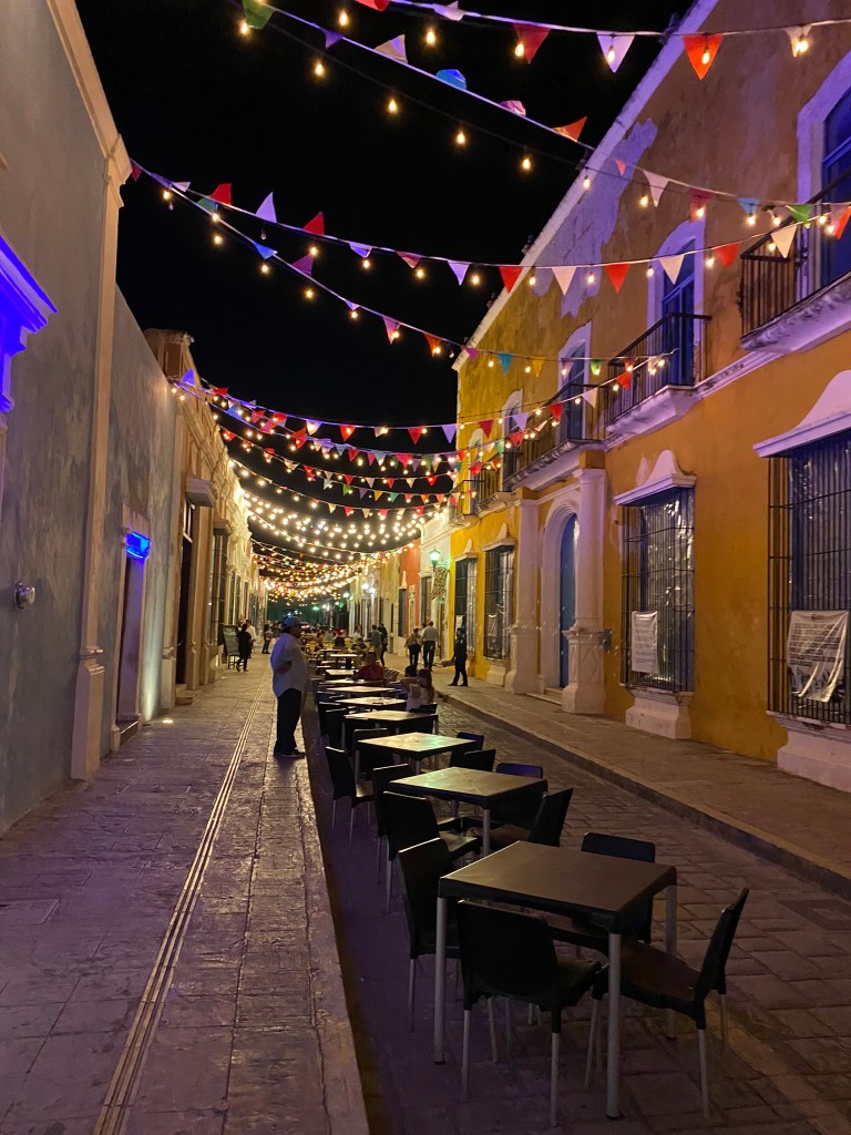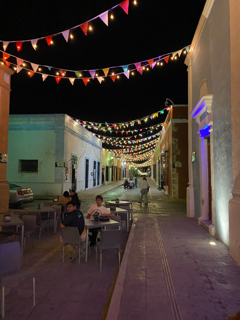 Wir haben hier ein paar Fotos gemacht und haben uns anschliessend auf den Weg aus dem historischen Zentrum raus nach Campeche-Downtown gemacht um hier den Markt anzuschauen und guenstige Tacos abzugreifen. Wir sind dann noch einmal ans Wasser und wollten den Sonnenuntergang anschauen, aber wir waren leider eine halbe Stunde zu spaet. Die Sonne geht hier echt super schnell unter. Wir sind dann in der Stadt umhergeschlender, um uns die die Strassen in den Abendstunden anzuschauen. Die letzten Stunden bis zur Abfahrt nach Palenque haben wir dann im Hostel mit Carli und Mel gechillt. Gegen Mitternacht war unser Campeche Ausflug dann auch schon beendet und Roberto und ich haben uns auf den Weg zurueck zur Busstation gemacht.