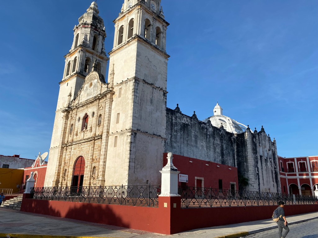 Nach den beiden Tagen in Merida wollten Roberto und ich eigentlich weiter nach Palenque reisen. Wir hatten allerdings eine Busverbindung gefunden, die etwas guenstiger war als eine Direktverbindung, allerdings hatten wir dafuer einen Zwischenstop in der Hafenstadt Campeche. Unser Reiseplan sah demnach so aus, dass wir am morgen Merida verliessen und 2,5 Stunden spaeter in Campeche ankamen.