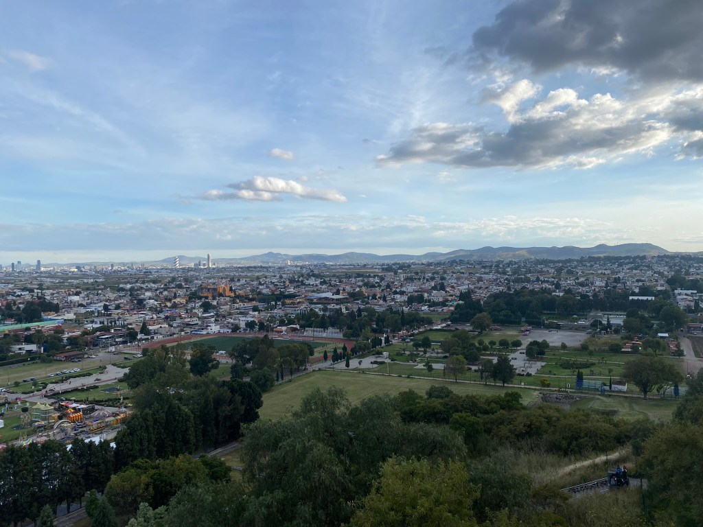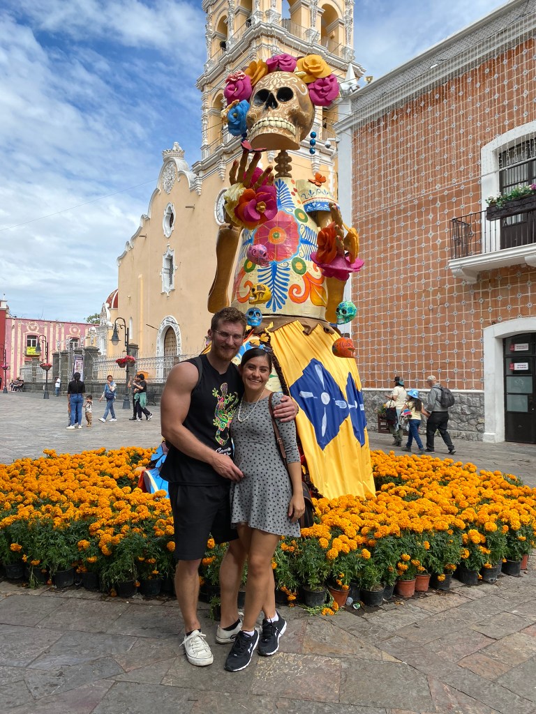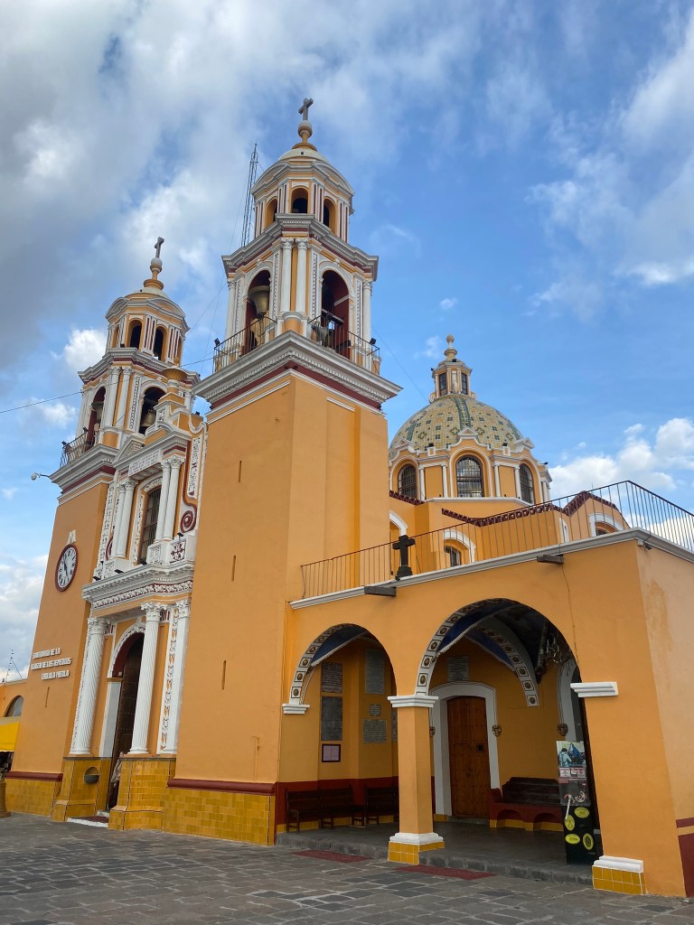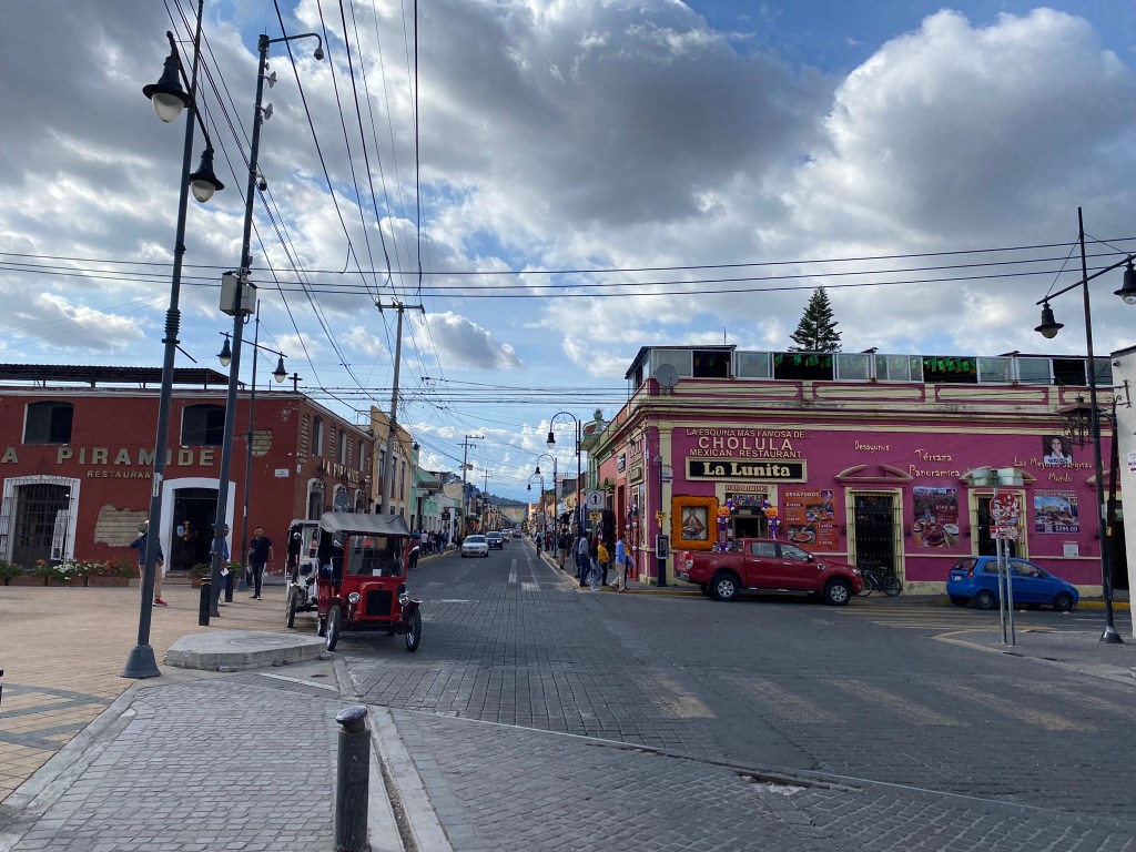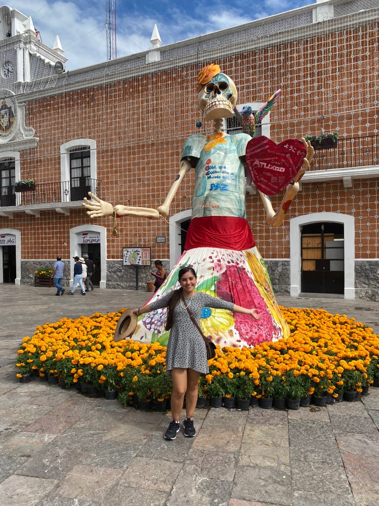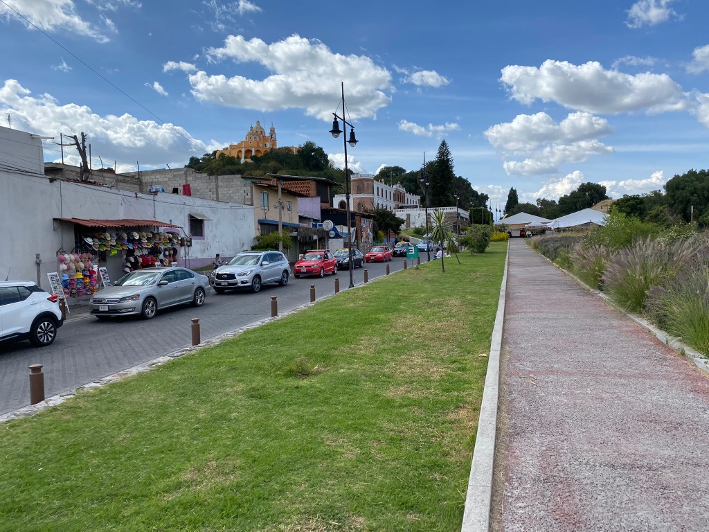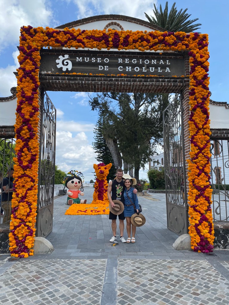 Unseren ersten gemeinsamen Ausflug in die nähere Umgebung von Puebla haben Estefania und ich nach Cholula unternommen. Cholula liegt so nah an Puebla dass beide Städte mittlerweile ineinander übergehen. Die Fahrt dorthin mit dem Bus hat auch nur knapp eine halbe Stunde gedauert. Cholula ist ein weiteres Pueblo Magico mit knapp 190.000 Einwohnern und ist für allem dafür bekannt, dass man hier die größte Pyramide Mexiko findet. Dabei ist die Pyramide nicht besonders hoch aber sehr breit und ist daher volumenmäßig die Größte. Auf der Spitze der Pyramide befindet sich außerdem noch eine Kirche. Die Stadt besteht aus zwei Stadteilen. Zum anderen San Andrés Cholula und zum anderen San Pedro Cholula. Während man das Zentrum um den Park in San Pedro findet, befindet sich die Pyramide nur einige Blocks entfernt in San Andrés. Wir hatten uns für den Tag vorgenommen einen ausgiebigen Spaziergang im Stadtzentrum zu unternehmen und gegen 2. Hälfte des Tages die Pyramide raufzugehen und von dort aus den Ausblick zu genießen. Zudem hatten wir hier die Gelegenheiten die traditionellen Festlichkeiten rund um den Tag der Toten zu sehen.