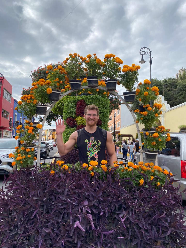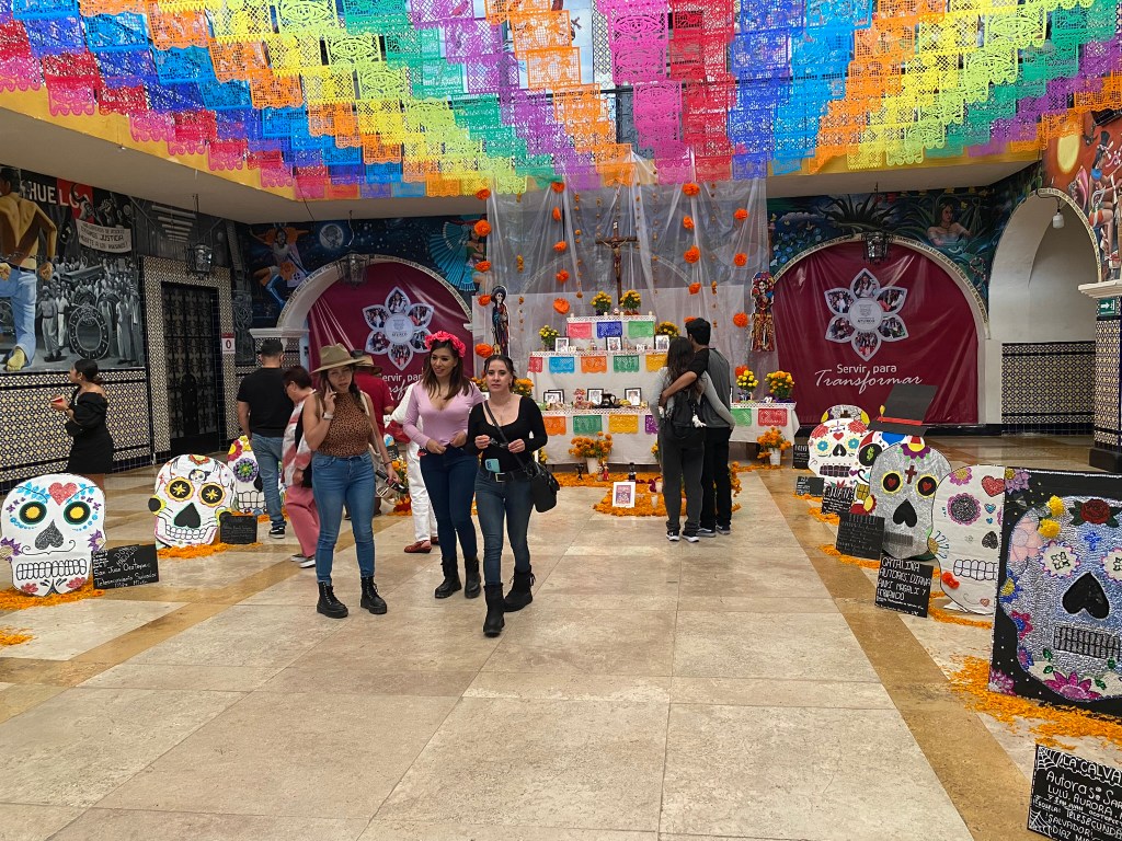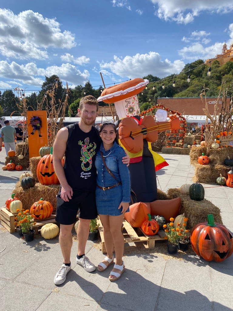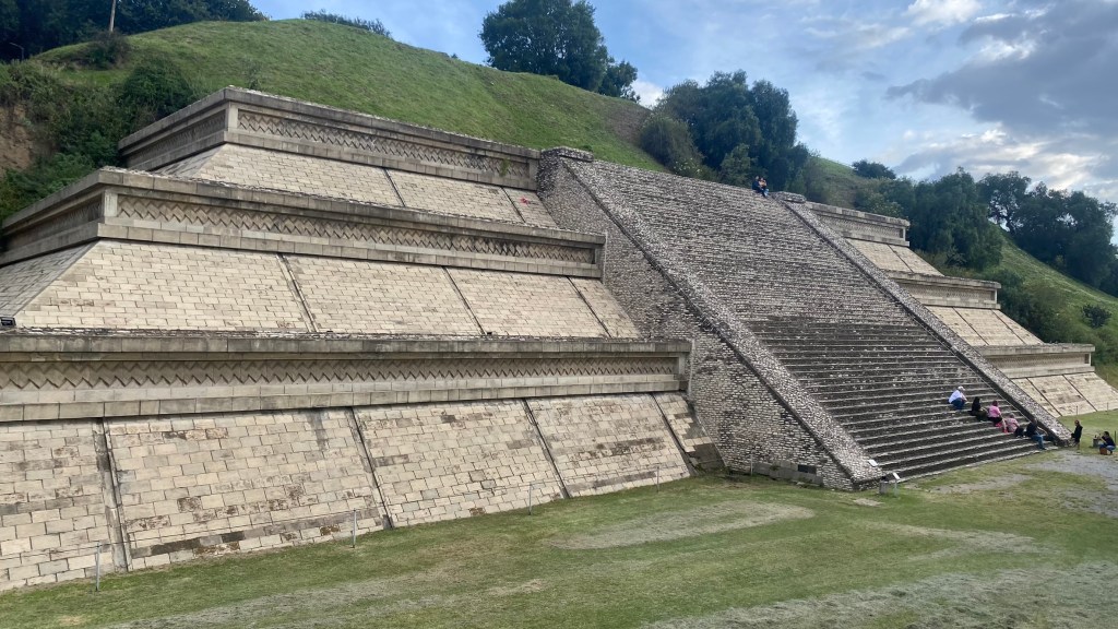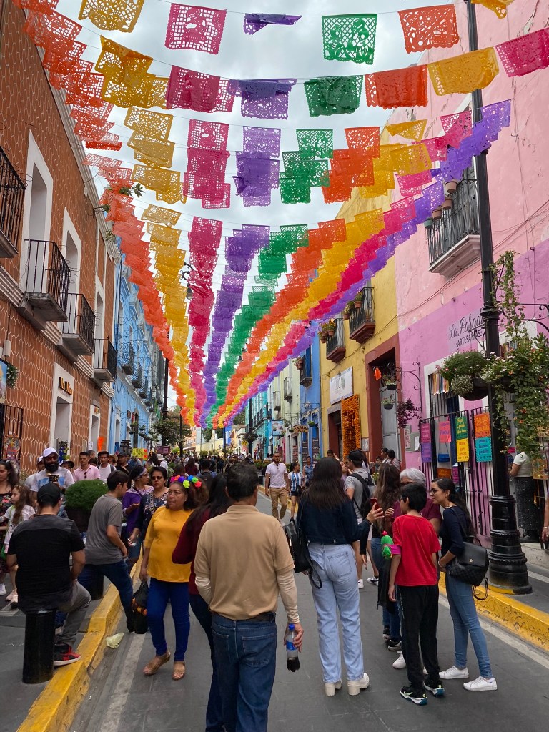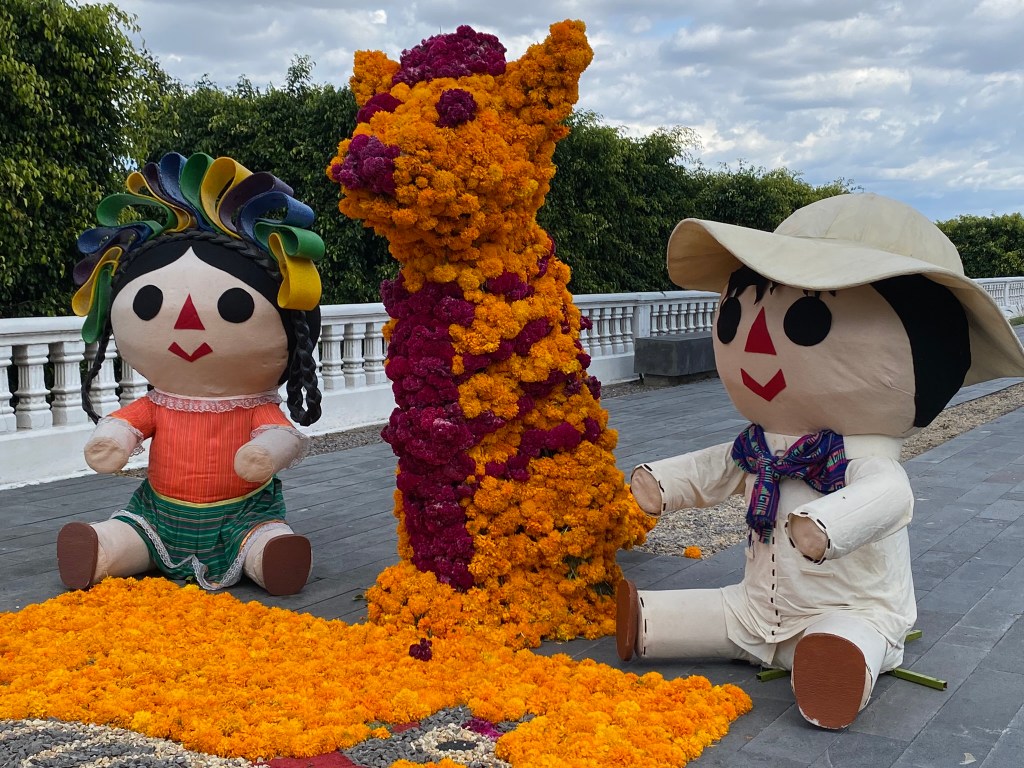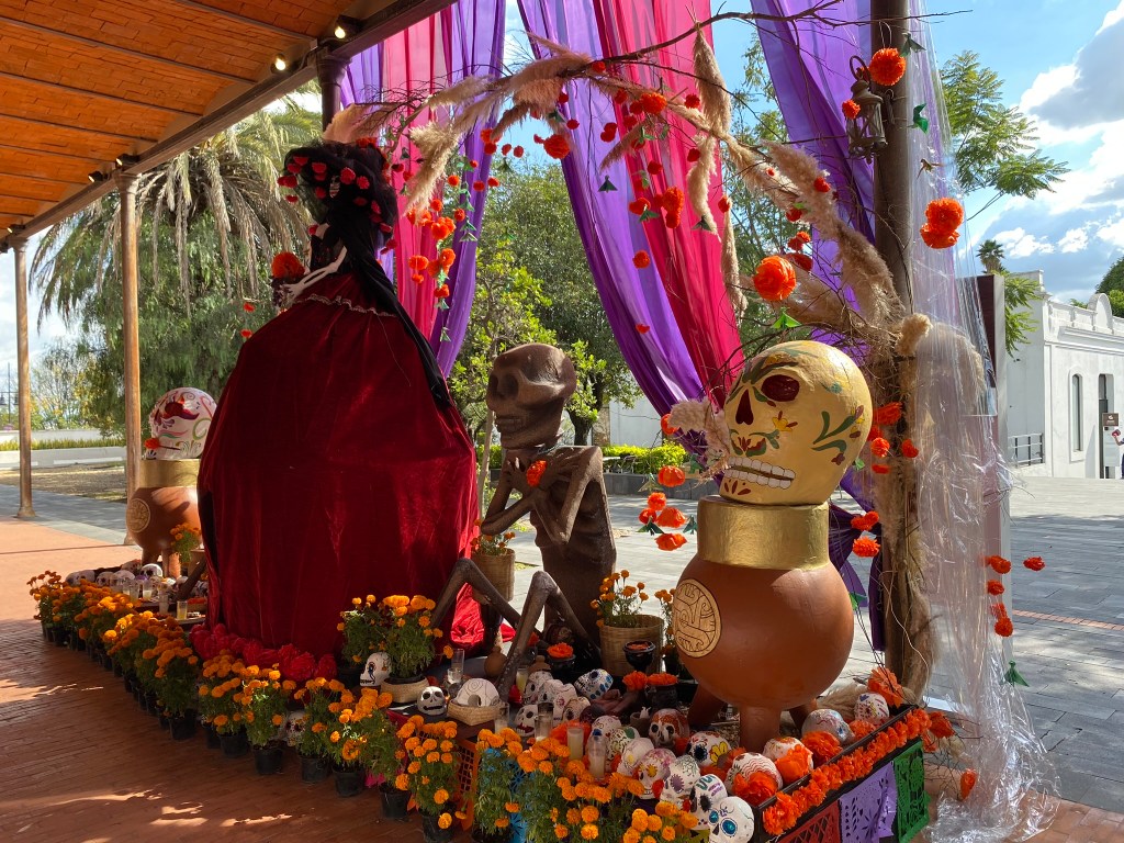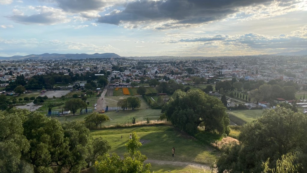 Unseren ersten gemeinsamen Ausflug in die nähere Umgebung von Puebla haben Estefania und ich nach Cholula unternommen. Cholula liegt so nah an Puebla dass beide Städte mittlerweile ineinander übergehen. Die Fahrt dorthin mit dem Bus hat auch nur knapp eine halbe Stunde gedauert. Cholula ist ein weiteres Pueblo Magico mit knapp 190.000 Einwohnern und ist für allem dafür bekannt, dass man hier die größte Pyramide Mexiko findet. Dabei ist die Pyramide nicht besonders hoch aber sehr breit und ist daher volumenmäßig die Größte. Auf der Spitze der Pyramide befindet sich außerdem noch eine Kirche. Die Stadt besteht aus zwei Stadteilen. Zum anderen San Andrés Cholula und zum anderen San Pedro Cholula. Während man das Zentrum um den Park in San Pedro findet, befindet sich die Pyramide nur einige Blocks entfernt in San Andrés. Wir hatten uns für den Tag vorgenommen einen ausgiebigen Spaziergang im Stadtzentrum zu unternehmen und gegen 2. Hälfte des Tages die Pyramide raufzugehen und von dort aus den Ausblick zu genießen. Zudem hatten wir hier die Gelegenheiten die traditionellen Festlichkeiten rund um den Tag der Toten zu sehen.