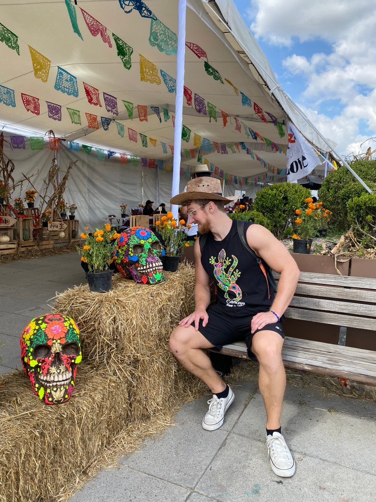 Nach ein paar Minuten spazieren gehen, sind wir an einem kleinen Platz vorbeigekommen an denen verschiedene Statuen bzw. so kleine Konstruktionen aufgebaut wurden, welche immer einen Bezug zum Tag der Toten hatten und haben hier ein paar schöne Aufnahmen machen können. Aber seht selbst: