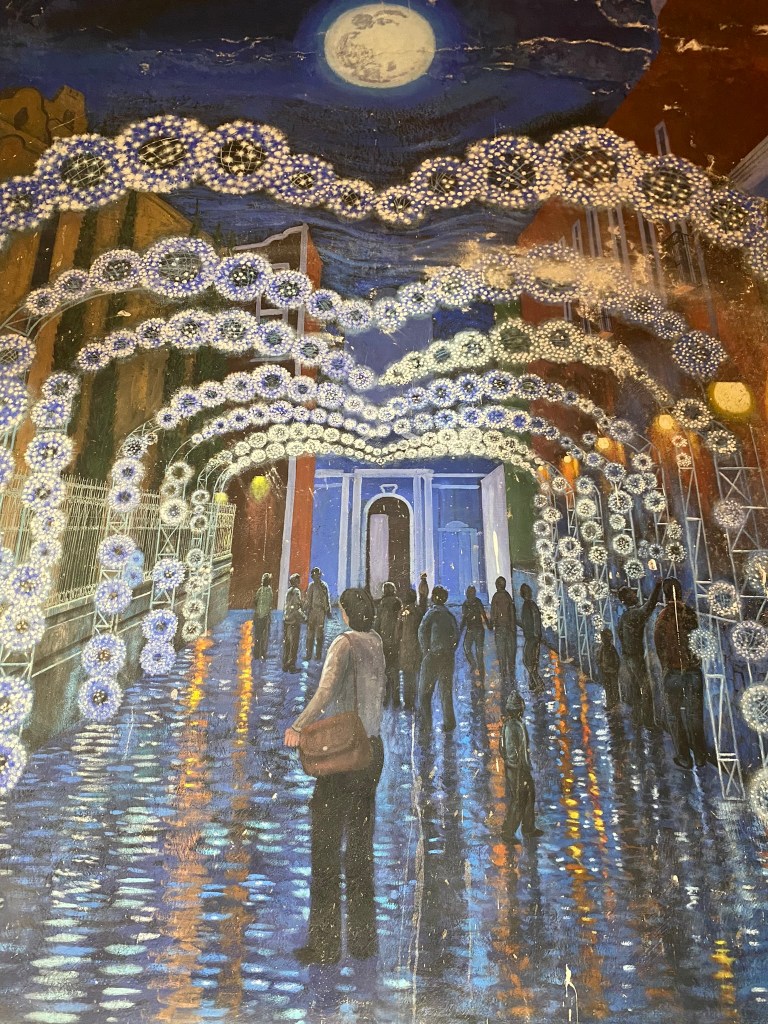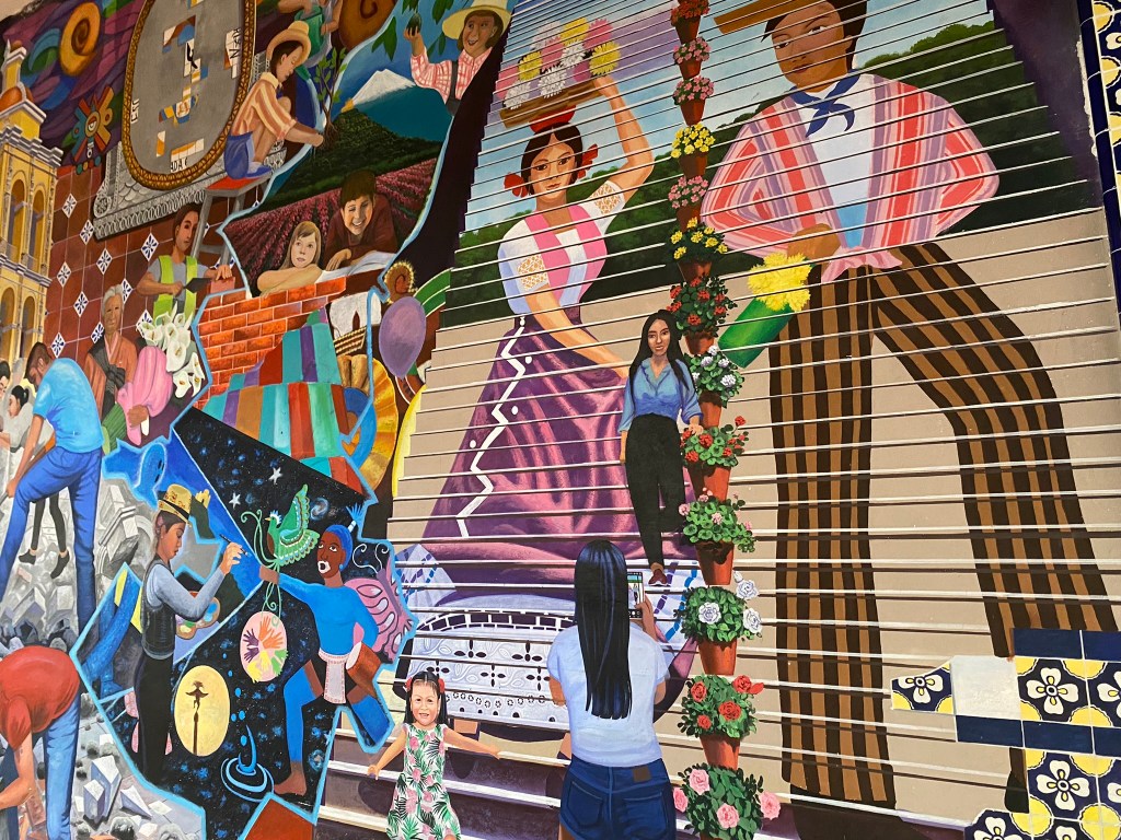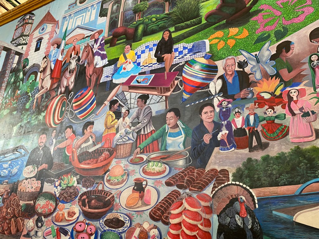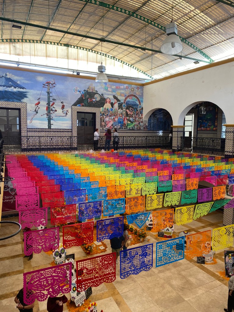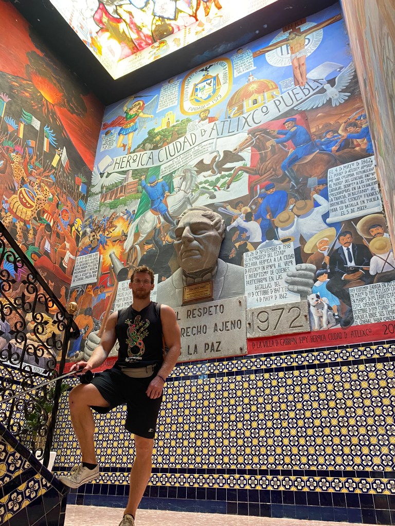 Wir haben dann ein paar runden durch das Stadtzentrum gedreht und konnten viele kleine bunte Gassen entdecken. Auch ein kleines Museum bzw. eher eine kleine Ausstellung haben wir uns angeschaut. Im Grund genommen war es eigentlich ein großer Raum mit 2. Etagen. Unten war ein großer Schrein aufgestellt und in der 2. Etage konnte man große Wandmalereien rund um die Stadt Altixco bestaunen.