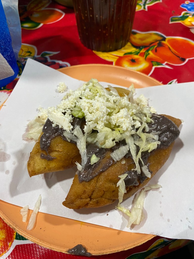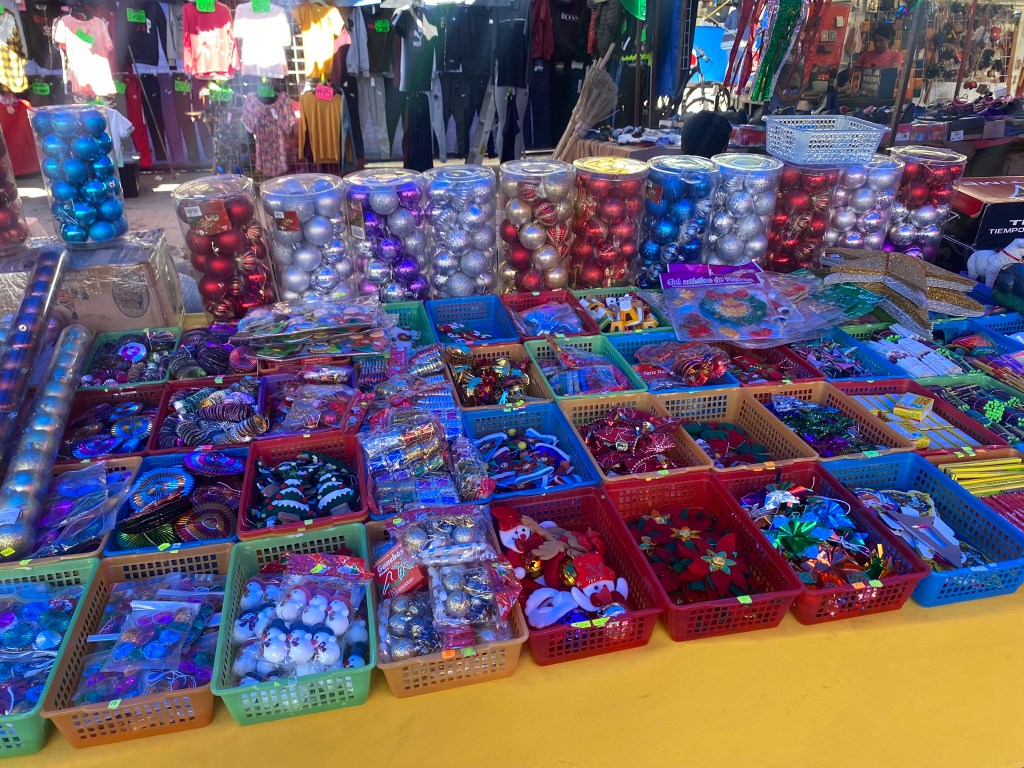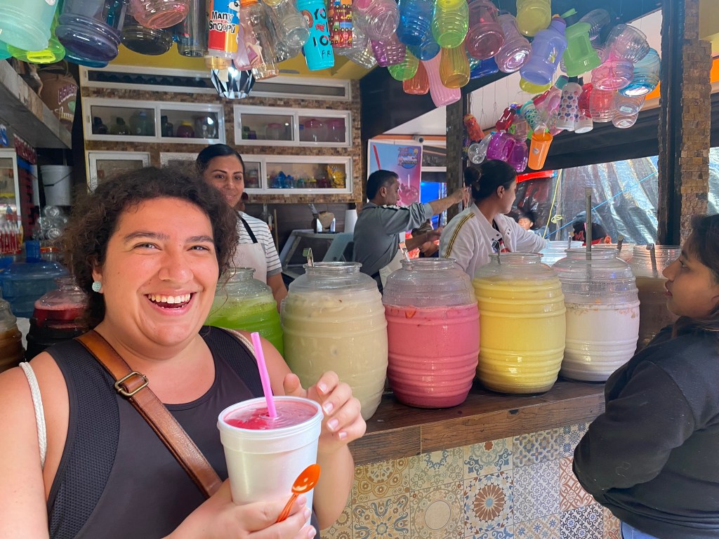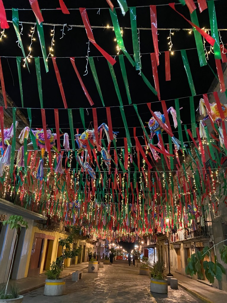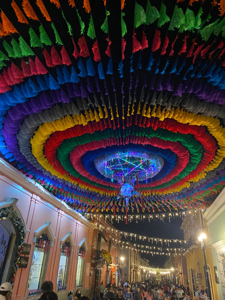 Die Folgetage nach den Ausflügen in Hierve el Agua, Monte Alban und der Mezcal-Farm habe ich hauptsächlich im Hostel bzw. in Oaxaca verbracht. Zu dieser Zeit konnte man immer mehr Weihnachtsschmuck in der Stadt beobachten. Neben diversen Tannenbäumen, fand man viele Lichterketten oder leuchtende Figuren, die überall in der Stadt aufgestellt wurden. In dieser Zeit habe ich auch Vania kennengelernt. Sie kommt aus Oaxaca City und hat mir ihre Lieblingsplätze in der Stadt, aber auch außerhalb Oaxaca City gezeigt. Wir haben Mezcal-Bars ausprobiert, sind in einen der bekanntesten Clubs in Oaxaca feiern gegangen und haben Spaziergänge durch die Stadt gemacht. Nebenher habe dabei noch die besten Street-Food Ständer der Stadt kennengelernt.
