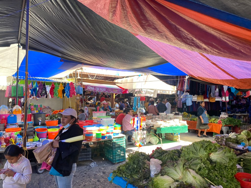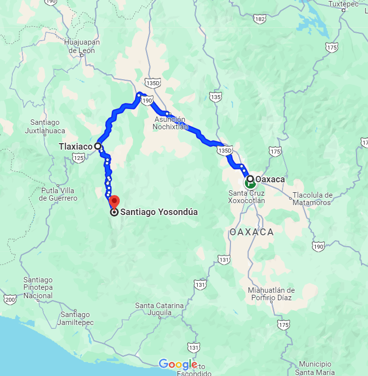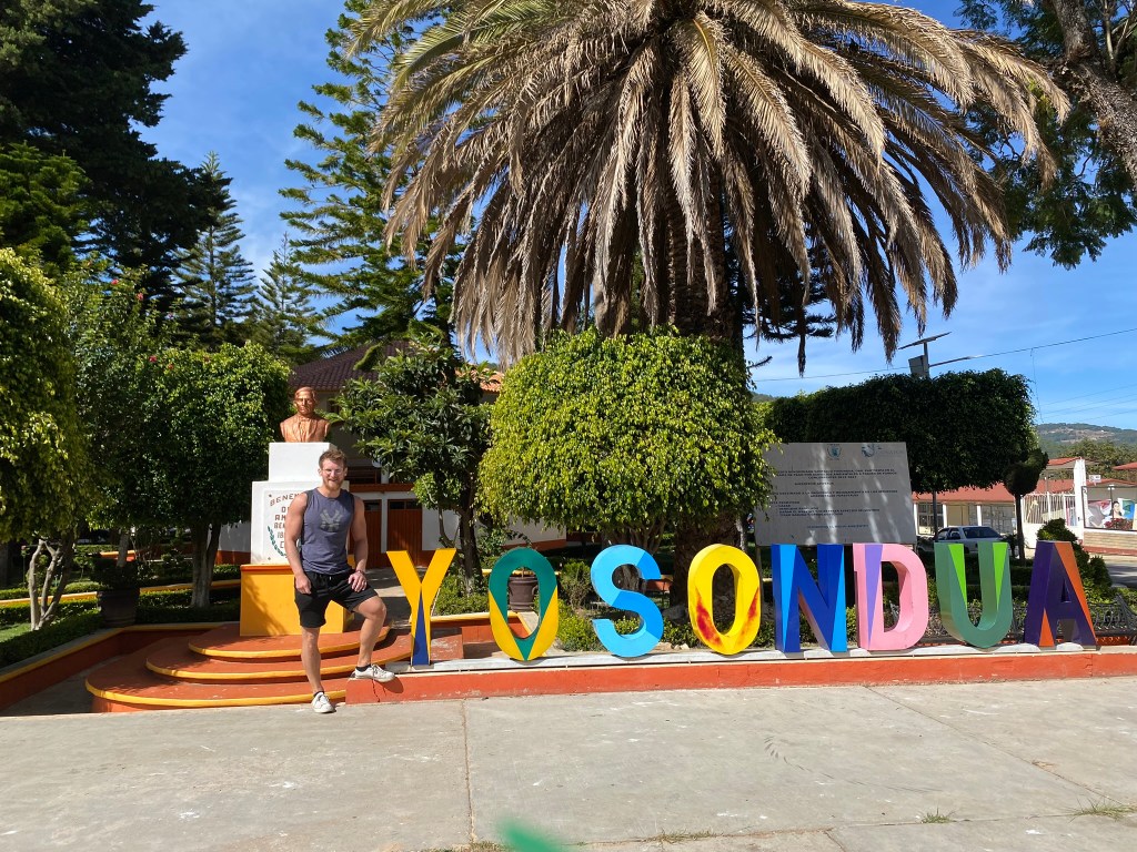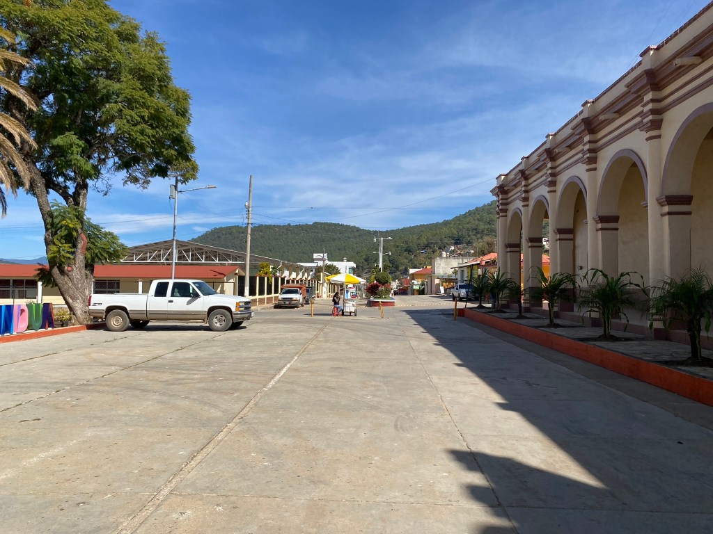 Am Tag unserer Abreise hat Vania mir dann noch den Ort gezeigt und ich habe ein paar Aufnahmen vom Stadtzentrum gemacht. Santiago Yosondúa ist mit seinen knapp 8000 Einwohnern eine sehr kleine Ortschaft. Daher bestand der Ort auch eigentlich nur aus kleinen Straßen/Gassen, einem Markt, einem Hotel und dem Zentrum mit der Kirche. Ich habe mich hier aber sehr wohl gefühlt. Ich glaube hier kennt jeder jeden und man wird überall freundlich begrüßt und die Menschen waren sehr neugierig wie ich hier in ihrem kleinen Dörfchen gelandet bin. Ab 18:00 Uhr abends öffnen dann auch die Taco-Läden, die häufig auf dem Grundstück von Familien betrieben werden und die das Essen dort mehr oder weniger in ihren Garagen zubereiten und man auch dort isst. Neben Tacos gibt es hier aber auch einen sehr guten Pizza-Laden und kleine Lädchen wo man sich einen Kaffee holen kann. Nach unserem 2-tägigen Aufenthalt sind wir dann zurück nach Oaxaca gefahren. Zuerst ging es in einer 2-stündigen Taxifahrt nach Tlaxiaco (für 200 Pesos, also relativ günstig für eine Taxifahrt). Dort sind wir in ein Colectivo umgestiegen, welches uns innerhalb von 3 Stunden für 140 Pesos direkt nach Oaxaca de Juarez gebracht hat.