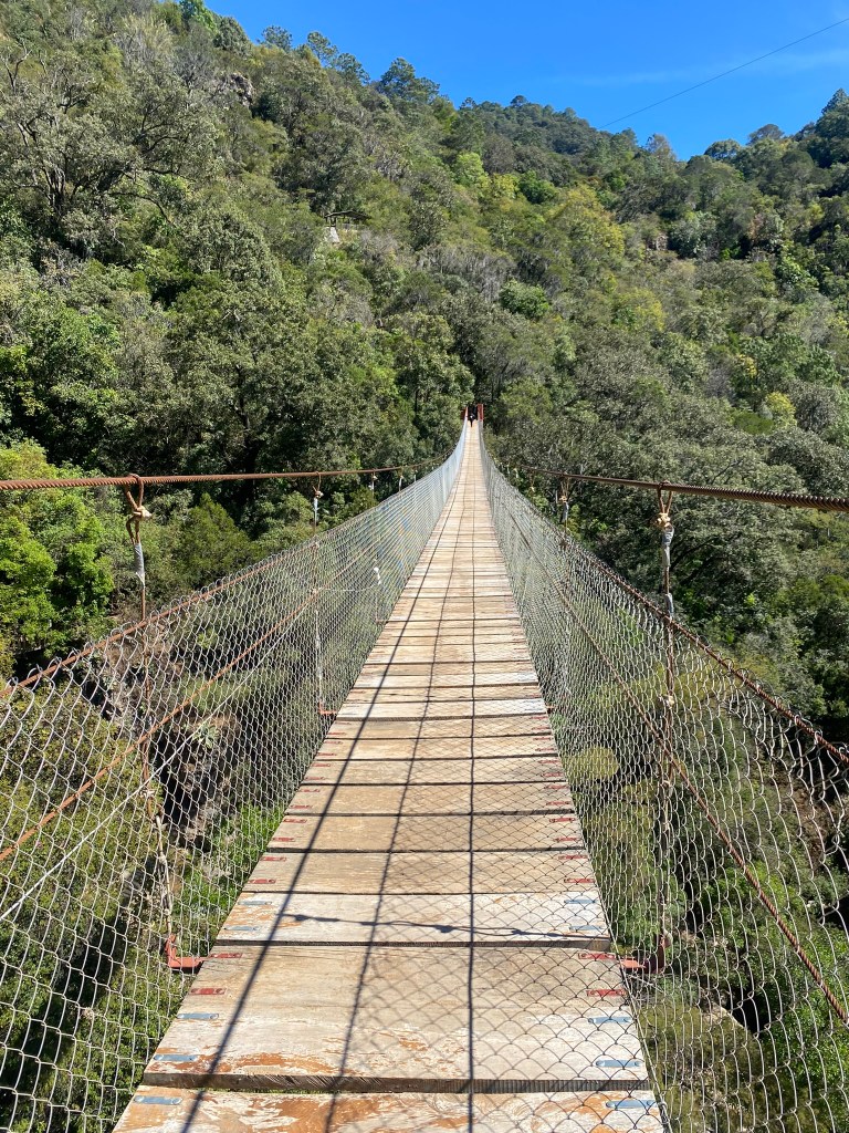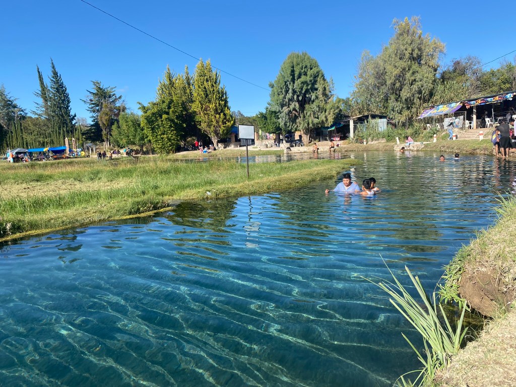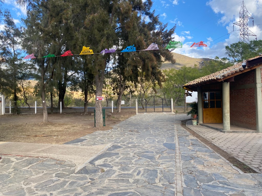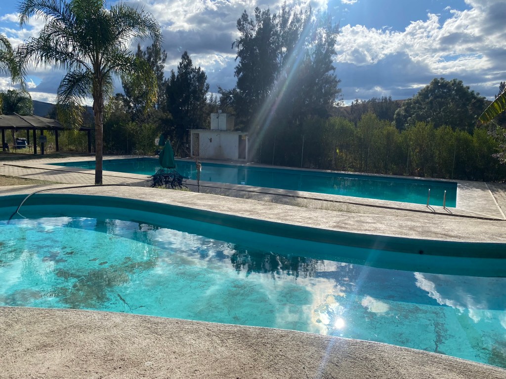 Einen weiterer Ort den ich in keinem Touri-Guide oder sonstigen Reiseblogs gelesen hatte ist San Andrés Huayapam. San Andrés Huyapam ist eines von vielen Municipios (vergleichbar mit Stadteilen in Deutschland) von Oaxaca de Juarez. Vania hat mir erzählt, dass man dort gut baden gehen kann und so sind wir am 05.12.23 in den etwa 20 Minuten vom Stadtzentrum entfernten Stadtteil gefahren. Dor angekommen fanden wir ein komplett leeres Freibad mit Bar vor. Also haben wir schnell ein paar Bier eingepackt und haben den Rest des Tages hier an diesem gut gepflegten, ruhigen Badeort verbracht. Mich hat es wirklich gewundert, dass hier nicht viel mehr Leute anzutreffen waren, da es tagsüber echt ziemlich warm war und man sonst hier in Oaxaca kaum die Gelegenheit hat baden zu gehen. Liegt aber vielleicht auch daran, dass man Online so gut wie nichts über dieses Freibad mit dazugehörigem Park mit Seilbahn findet.