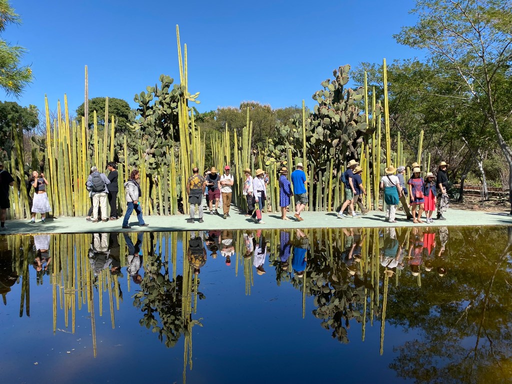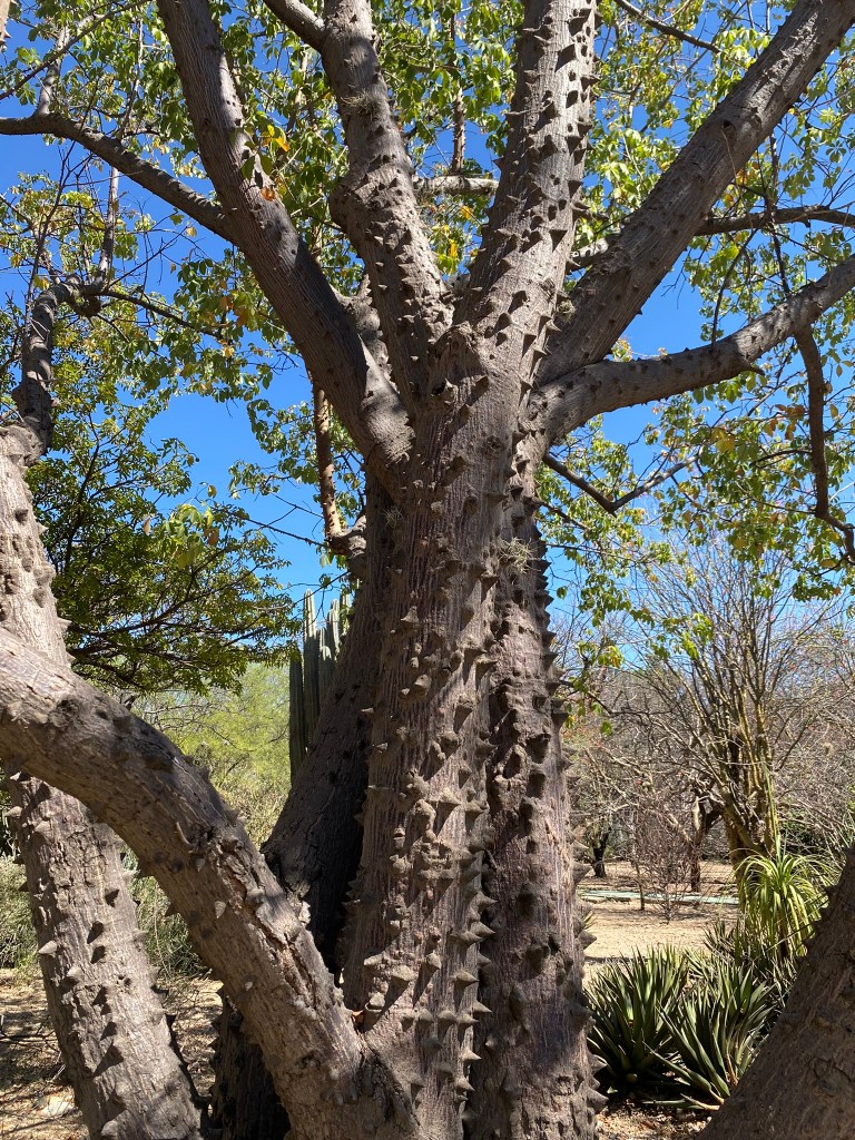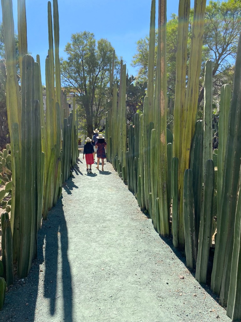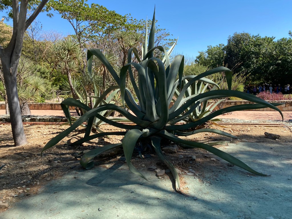 Mein vorletzter Ausflug in Oaxaca de Juarez sollte mich in den botanischen Garten der Stadt führen. Jeden morgen um 10:00 bzw. 11:00 Uhr finden dort spanisch- und englischsprachige Führungen durch die Gartenanlage statt, die 100 Pesos kostet. Unser Guide, der hier im botanischen Garten seine Doktorarbeit schreibt, war sehr engagiert und hat uns mit reichlich Informationen zu den verschiedenen Pflanzen versorgt. Was mir besonders in Erinnerung geblieben ist, war die Tatsache, dass man hier noch eine der ersten Gattungen der Maispflanze finden kann. Zudem fand ich vor allem die Anzahl der Kakteen, die man hier finden konnte, sehr beeindruckend. Ich hatte während meines Aufenthalts das Gefühl vermittelt bekommen, dass man sich hier echt Mühe gibt den Besuchern eine gute Übersicht über die Pflanzenvielfalt von Oaxaca zu vermitteln. Was mir auch in Erinnerung geblieben ist, ist die Cochenilleschildlaus. Die Weibchen dieses auf dem Nopal-Kaktus lebende Parasiten produzieren den äußerst seltenen Farbstoff Karmin, der unter anderem für die Färbung von Kleidung verwendet wurde und heutzutage in Produkten wie Lippenstift eingesetzt wird.