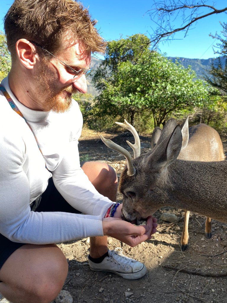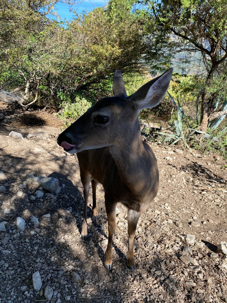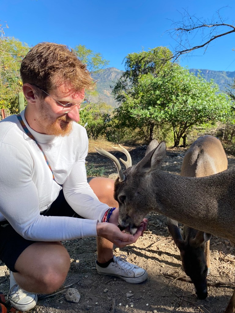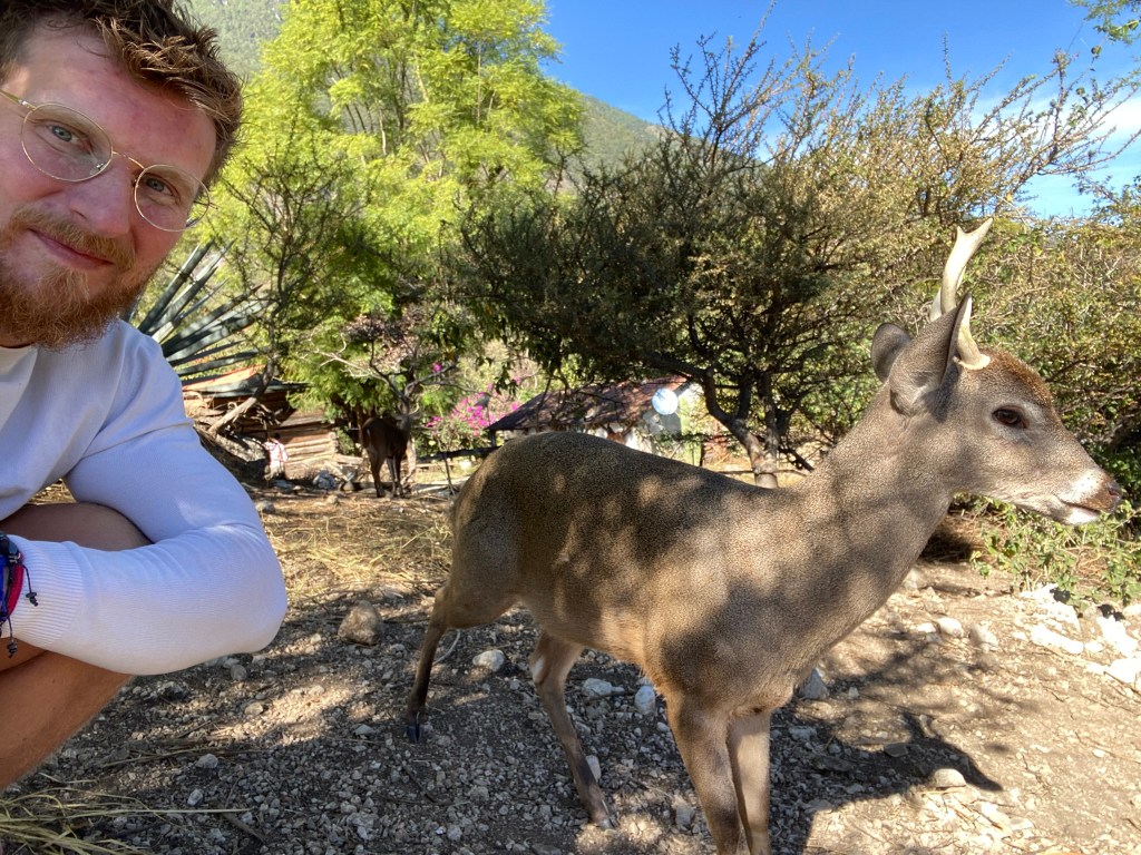 Am nächsten Tag sind wir dann in den Nationalpark Yosondúo gefahren. Sie wollte mir eine kleine Reh-Farm zeigen. Diese lag allerdings mitten in den Bergen und der einzige Weg war mit dem Taxi von Santiago Yosondúa dorthin. Der Taxifahrer war zum Glück so nett und hat auf uns gewartet solange wir dort auf der kleinen Farm waren. Zuerst hat uns eine nette Dame in das Gehege geführt und wir durften die Rehe füttern. Die Kleinen waren etwas schüchtern aber die etwas Älteren sind sofort zu uns gekommen. Danach wurde für uns noch ein kleines Frühstück zubereitet und es gab kostenlos Mezcal dazu. Beim Frühstück haben wir auch noch die Farm-Katze Anubis kennengelernt, die sehr zutraulich war.