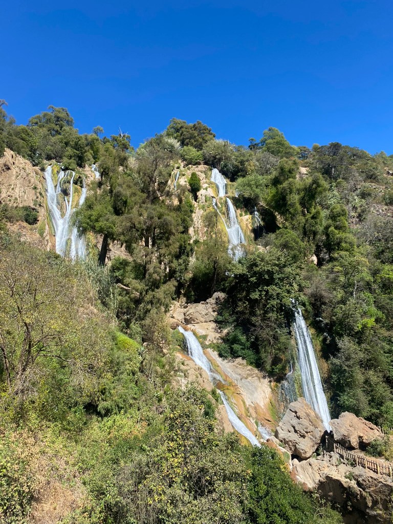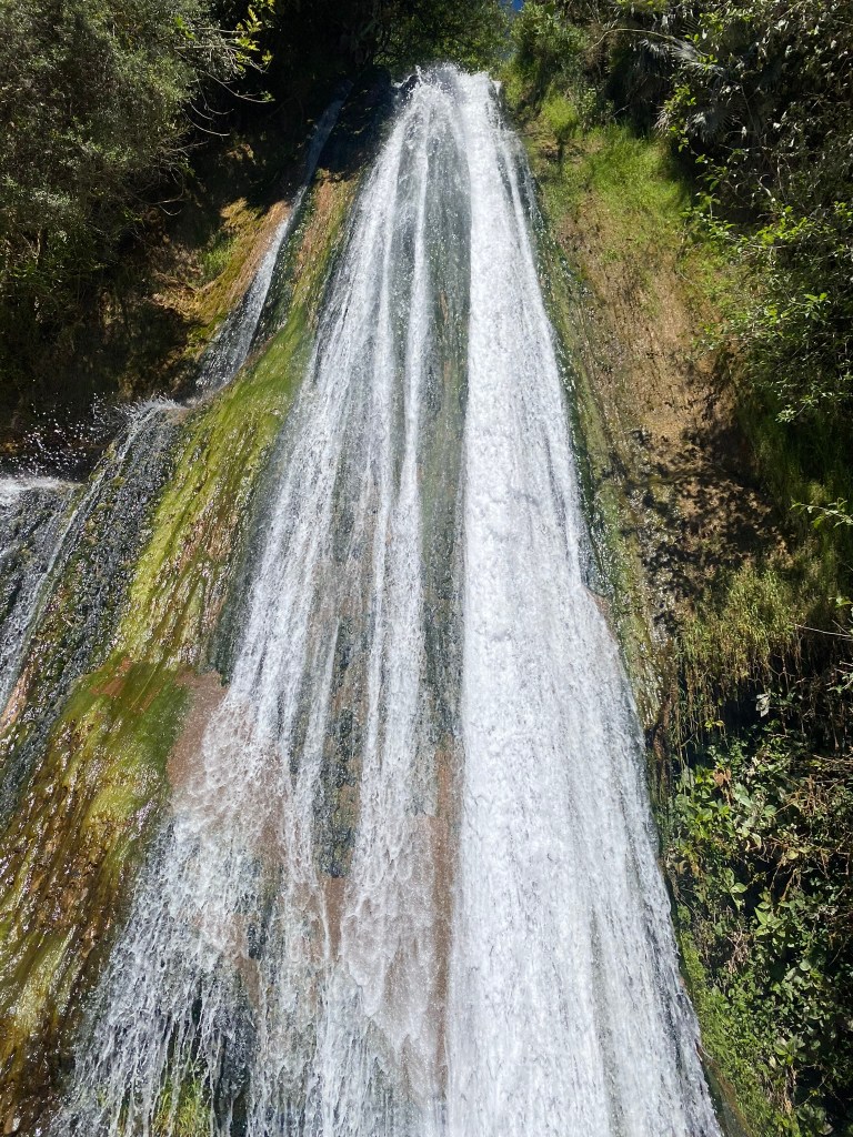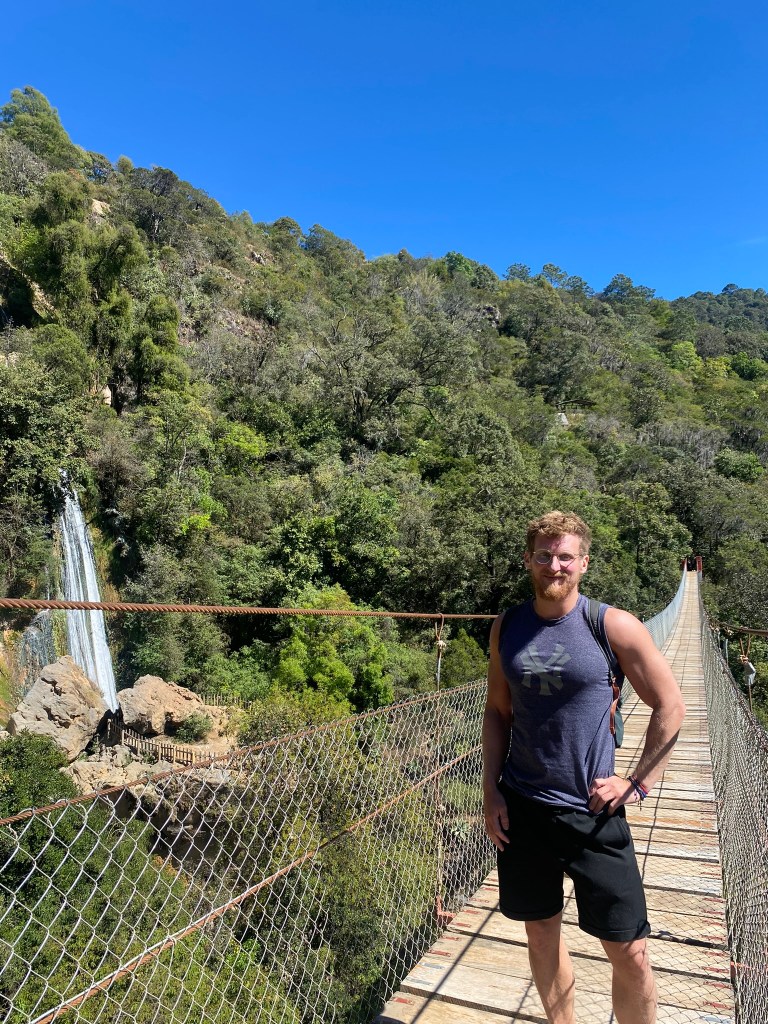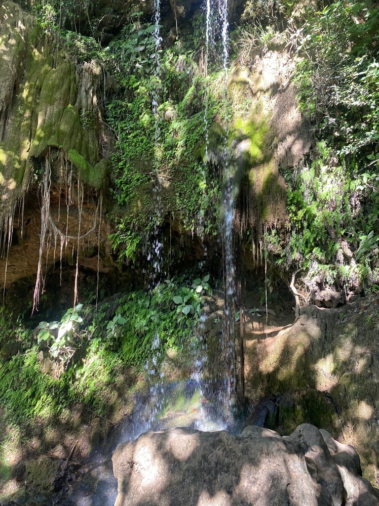 Auf dem Rückweg in die Stadt hat uns der Taxi-Fahrer an einer Hängebrücke rausgelassen. Diese war 130 Meter lang und 28 Meter hoch. Von hier aus hatte man einen super Ausblick auf den nahegelegenen Wasserfall. Von der Brücke aus haben wir den Ausblick auf die Berge genossen und sind dann weiter zum Wasserfall wo sich auch noch 2 kleine Höhlen befanden. Wir sind hier etwas rumgeklettert und haben uns den Wasserfall aus der Nähe angeschaut. Die Natur hier in diesem Nationalpark ist echt super schön und man kann hier sicherlich auch gut wandern gehen.