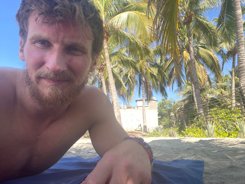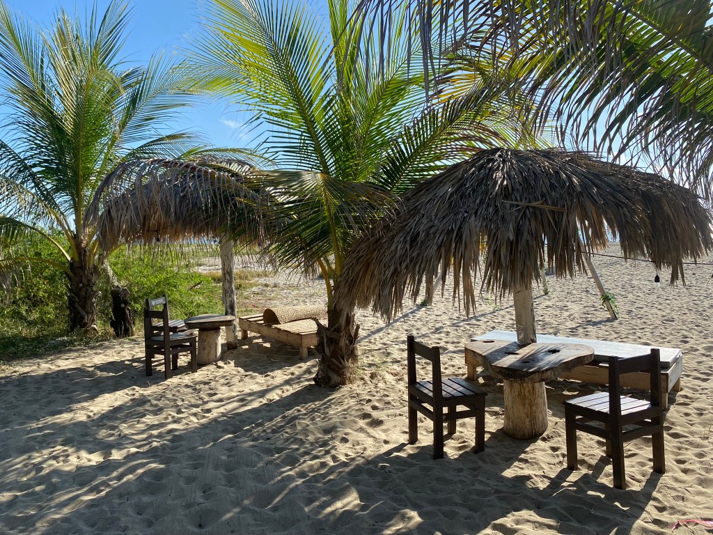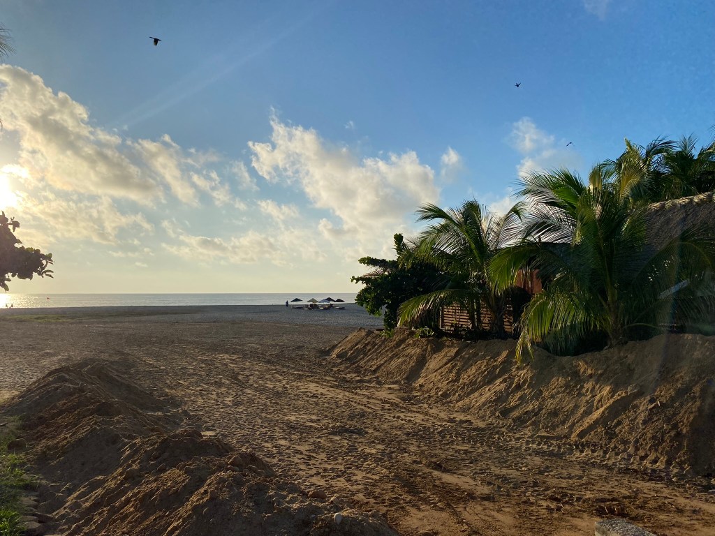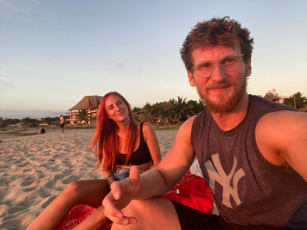 Nach der doch sehr anstrengenden Fahrt im Nachtbus, während der wir beide kaum geschlafen hatten, mussten wir uns erstmal etwas erholen. Allerdings konnten wir erst um 15:00 Uhr einchecken sodass wir knapp 7 Stunden überbrücken mussten, bis wir uns etwas einrichten konnten. Wir haben uns dazu entschieden zum nahegelegenen Strand zu gehen, in der Hoffnung dort vielleicht ein schattiges Plätzchen zu finden. Dort angekommen erwartete uns ein wirklich sehr schöner Strand. Der Sand ist angenehm weich, es weht ein leichtes Lüftchen und das Wasser ist im Gegensatz zu Cancun wirklich einigermaßen frisch (könnte aber auch daran liegen, dass mittlerweile “Winter” herrschte). Wir haben zum Glück ein kleines Fleckchen Schatten unter einigen Palmen finden können und haben hier den Rest unseres ersten Tages verbracht. Das Schwimmen in den Wellen macht echt Spaß und es lässt sich gut auch länger im Wasser aushalten. Nachdem wir erfolgreich im Hostel eingecheckt hatten, sind wir dann noch ein paar Kleinigkeiten im nahegelegenen Kiosk eingekaufen gegangen und konnten hier bereits einen schönen Sonnenuntergang beobachten.