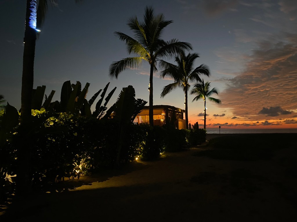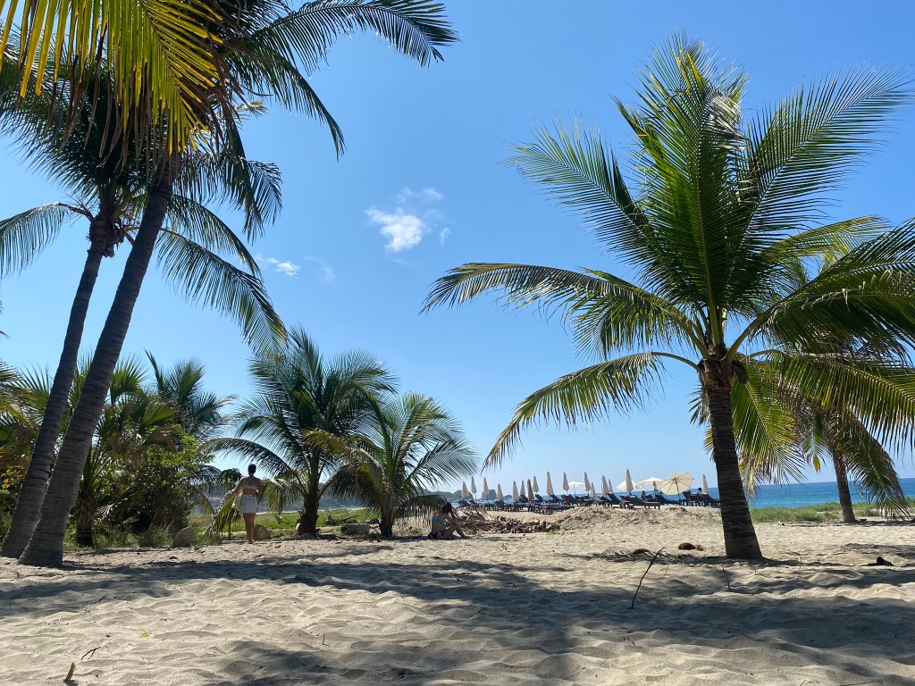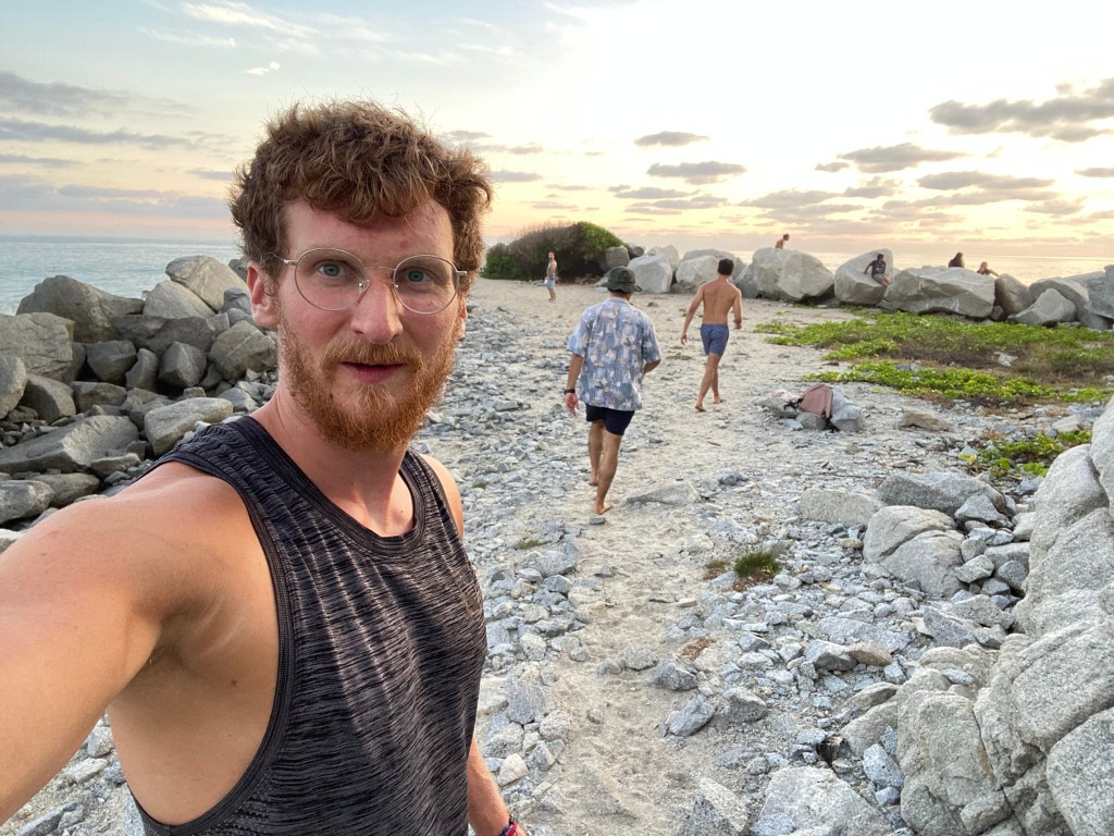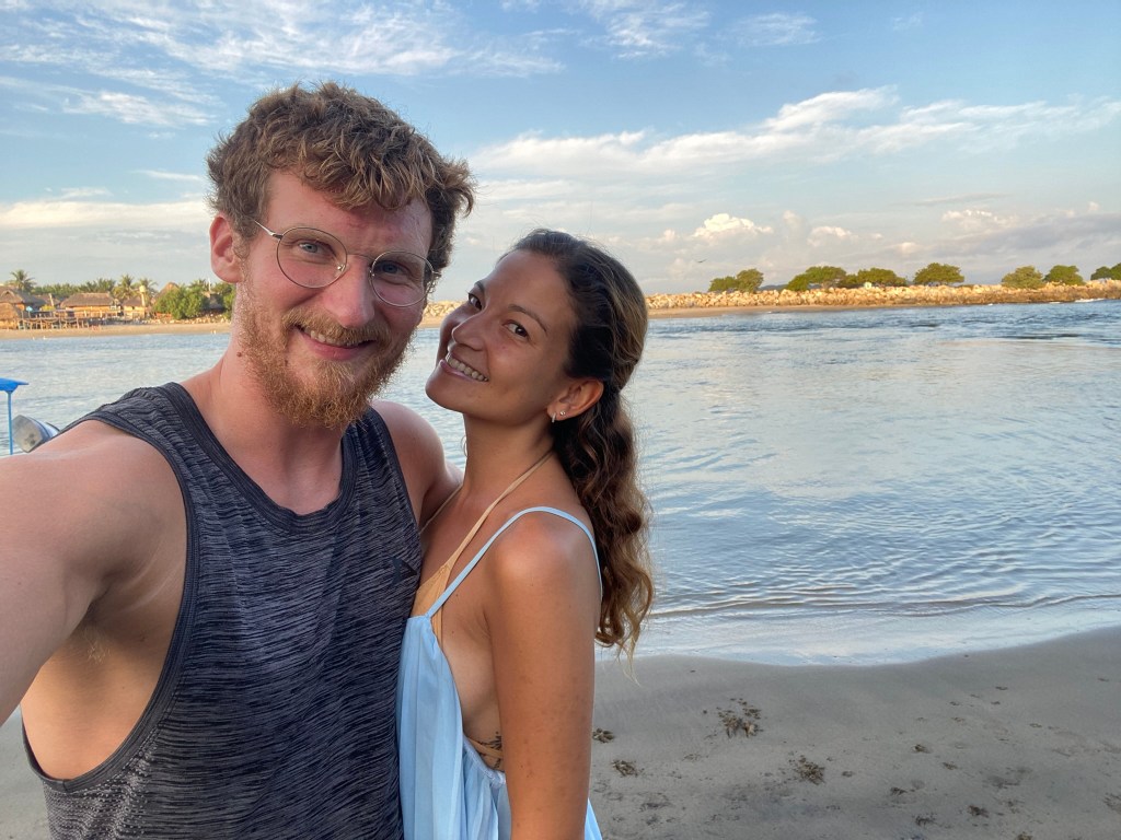 Nach der doch sehr anstrengenden Fahrt im Nachtbus, während der wir beide kaum geschlafen hatten, mussten wir uns erstmal etwas erholen. Allerdings konnten wir erst um 15:00 Uhr einchecken sodass wir knapp 7 Stunden überbrücken mussten, bis wir uns etwas einrichten konnten. Wir haben uns dazu entschieden zum nahegelegenen Strand zu gehen, in der Hoffnung dort vielleicht ein schattiges Plätzchen zu finden. Dort angekommen erwartete uns ein wirklich sehr schöner Strand. Der Sand ist angenehm weich, es weht ein leichtes Lüftchen und das Wasser ist im Gegensatz zu Cancun wirklich einigermaßen frisch (könnte aber auch daran liegen, dass mittlerweile “Winter” herrschte). Wir haben zum Glück ein kleines Fleckchen Schatten unter einigen Palmen finden können und haben hier den Rest unseres ersten Tages verbracht. Das Schwimmen in den Wellen macht echt Spaß und es lässt sich gut auch länger im Wasser aushalten. Nachdem wir erfolgreich im Hostel eingecheckt hatten, sind wir dann noch ein paar Kleinigkeiten im nahegelegenen Kiosk eingekaufen gegangen und konnten hier bereits einen schönen Sonnenuntergang beobachten.