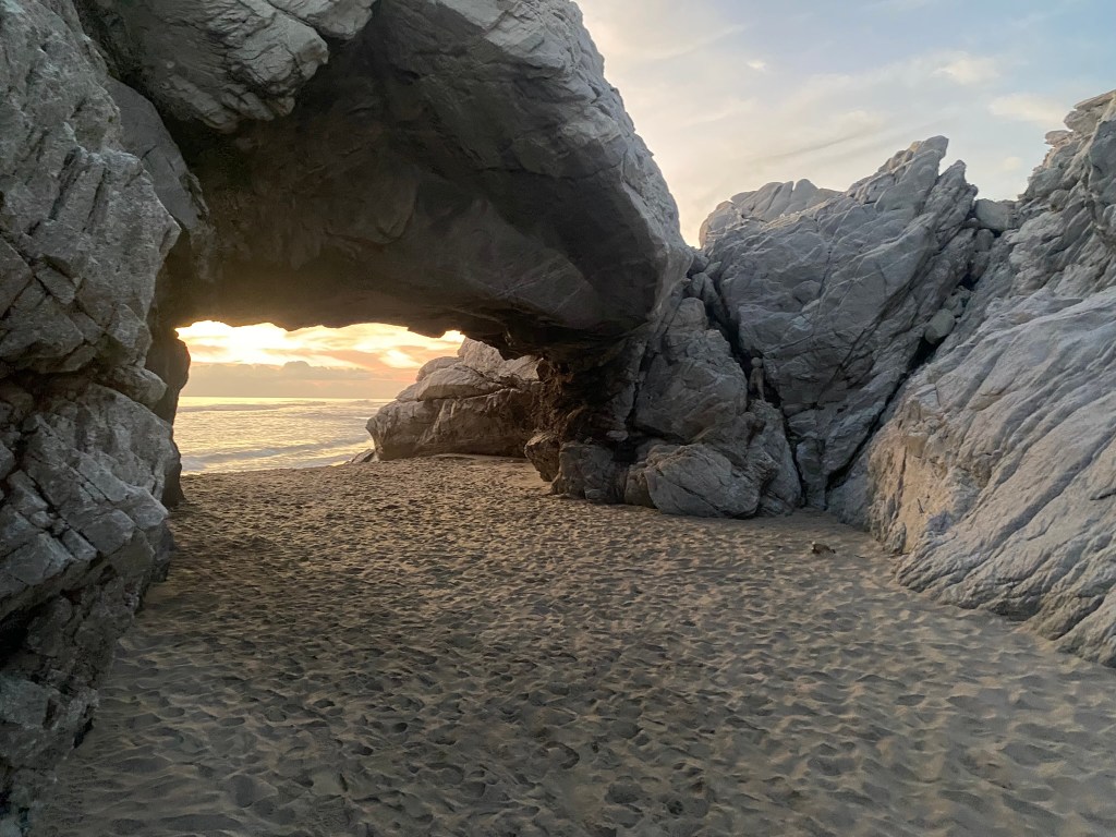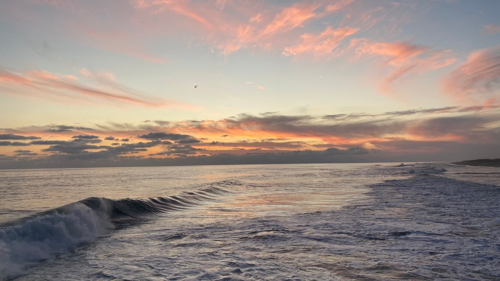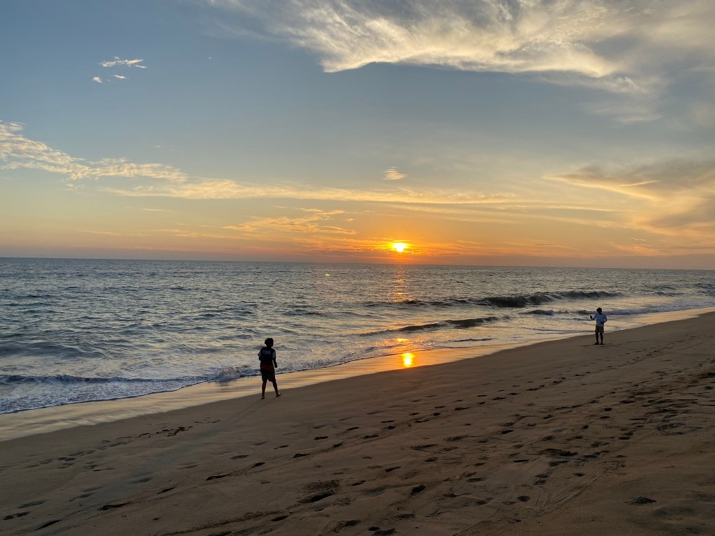Als es langsam dunkel wurde hat uns unser Guide noch angeboten uns an einen kleinen versteckten Platz am Strand zu führen von wo aus man den Sonnenuntergang beobachten konnte. Wir haben das natürlich dankend angenommen und konnten hier einen wunderschönen Sonnenuntergang mit schönem Wellengang anschauen.