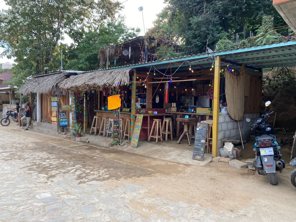 Anschließend bin ich dann noch einmal los und habe einen kleinen Spaziergang durch den Ort gemacht. Es gibt in Mazunte eigentlich eine Hauptstraße in der man viele Restaurants findet aber auch kleine Läden mit handgemachten Gegenständen kann man hier erwerben. Es gibt neben einigen Hostels auch viele kleine Hütten, die man Mieten kann, falls man vorhat hier zu übernachten. Gegen 17:00 Uhr haben wir uns dann auf den Rückweg gemacht und sind kurz nach Einbruch der Dunkelheit wieder in Puerto Escondido angekommen. Auch dieser Ausflug nach Mazunte war sehr cool und hat sich echt gelohnt. Zusammen mit Romina hat er noch einmal mehr Spass gemacht. Genauso wie Chacahua kann ich einen Abstecher nach Mazunte wärmstens emfpehlen, wenn man sich in Puerto aufhält. Ich persönlich würde aber nächstes mal eher mit einem Quad fahren oder die Variante mit einem Colectivo wählen, auch wenn das Colectivo etwas länger braucht. Die Verbindung ist nämlich nicht direkt sondern mit einem Umstieg. Aber möglich ist es trotzdem.