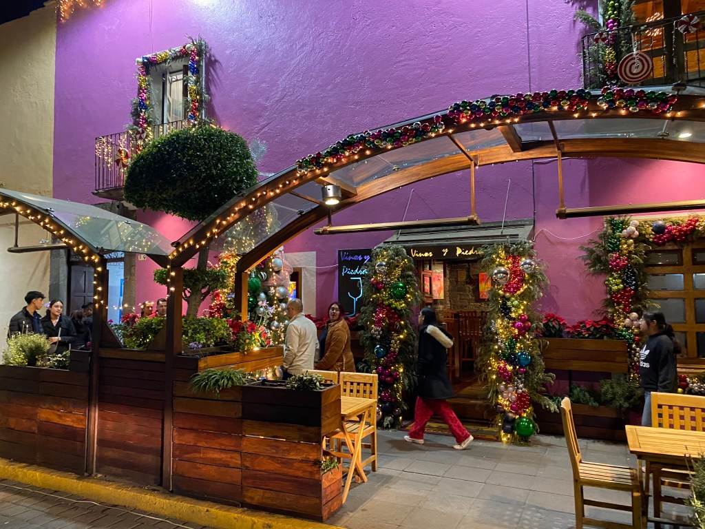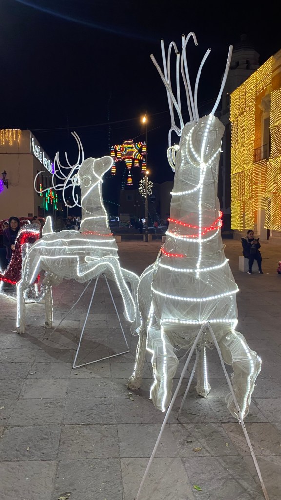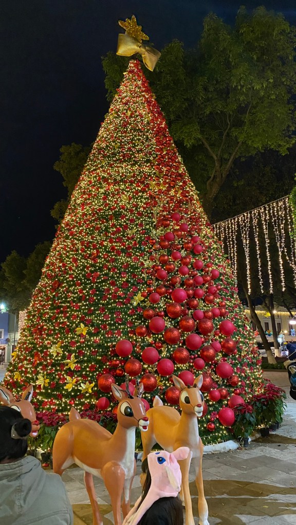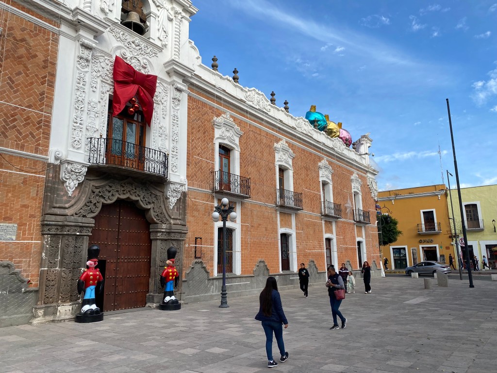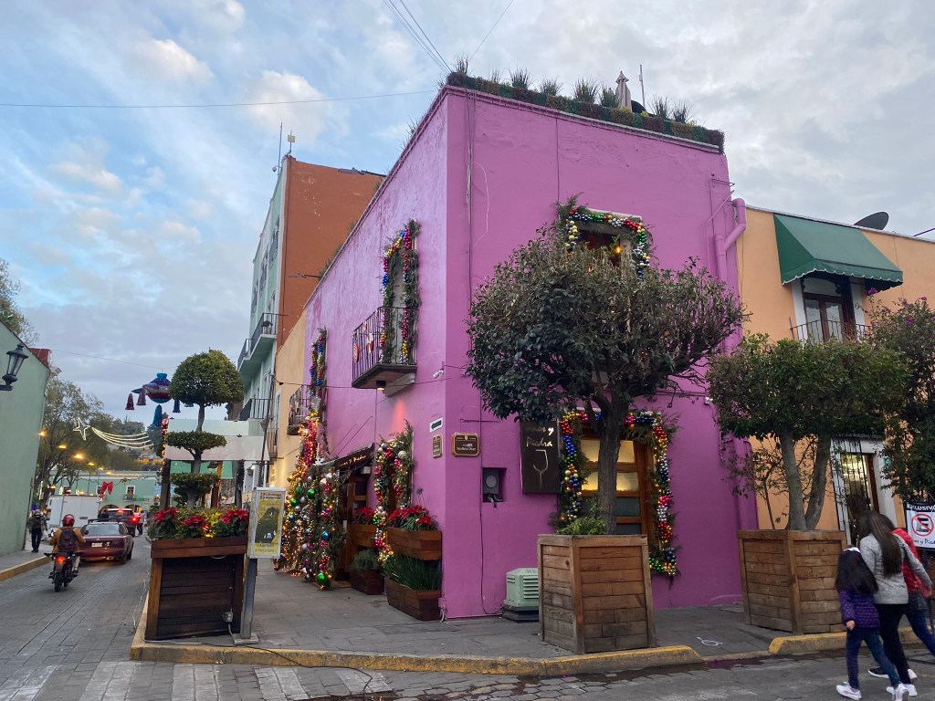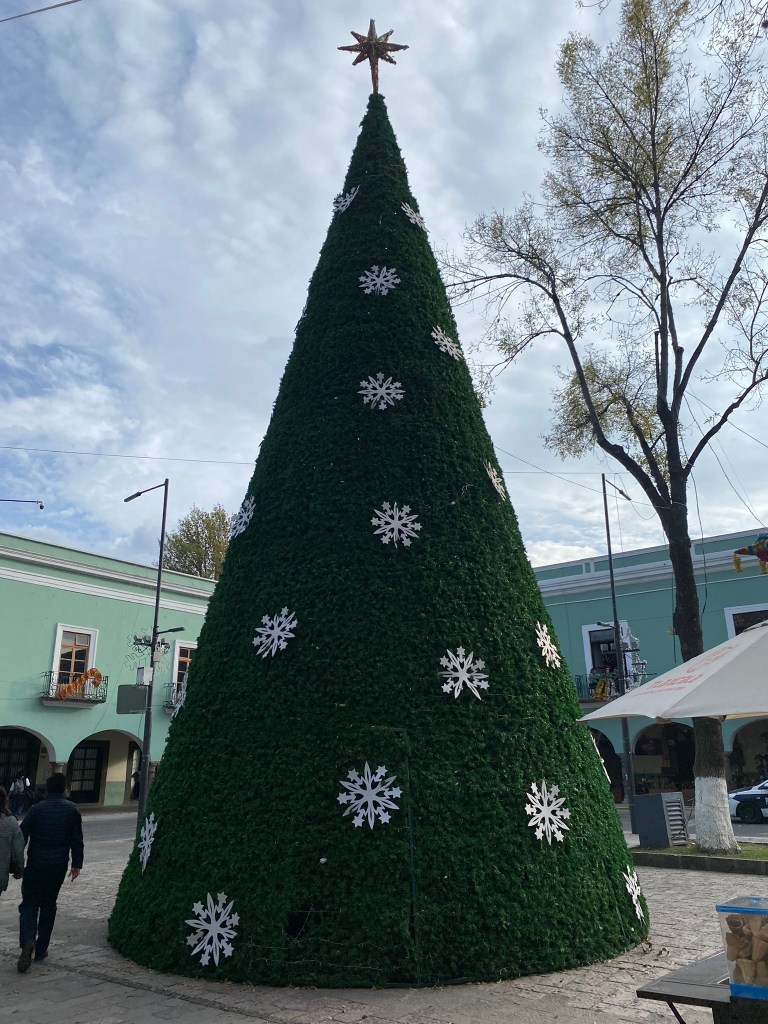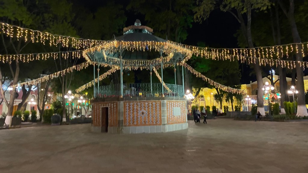 Wie bereits erwähnt haben wir noch überall im Stadtzentrum Weihnachtsdeko finden können. Ich muss echt zugeben, dass sich die Mexikaner beim Ausschmücken ihrer Städte echt viel einfallen lassen. Die ganzen Lichter, die abends überall rund ums Zentrum zu leuchten anfangen verleihen der Stadt wirklich eine weihnachtliche Atmosphäre und es kommt sofort Weihnachtsstimmung auf. Wir sind also nach unserem Ausflug zur Treppe zurück zum Zócalo und haben diese Stimmung eingefangen. Wir beide waren zu diesem Zeitpunkt auch schon sehr hungrig und haben uns daher dazu entschieden in einem der zentrumsnahen Restaurants zu abends zu essen. Anschließend haben wir uns auf die Heimreise zurück nach Puebla gemacht.