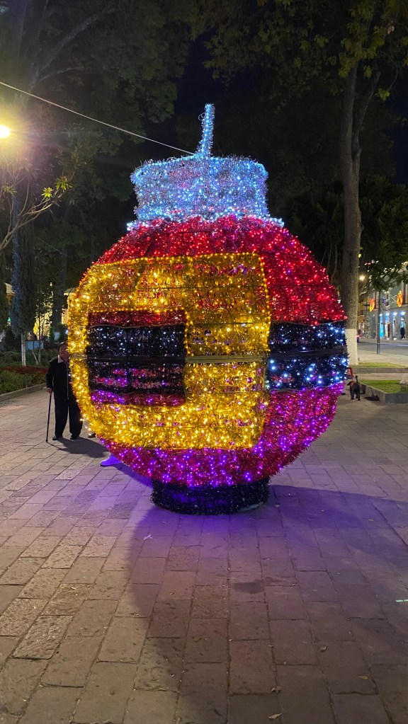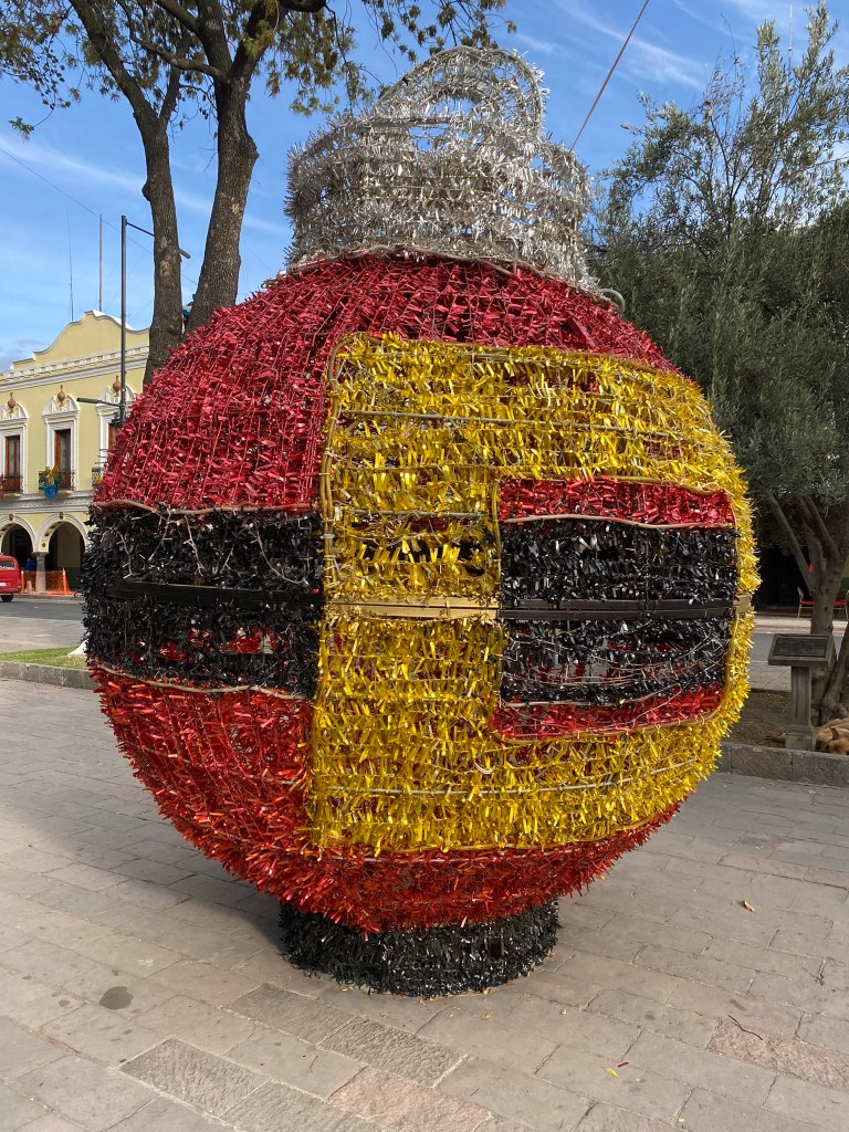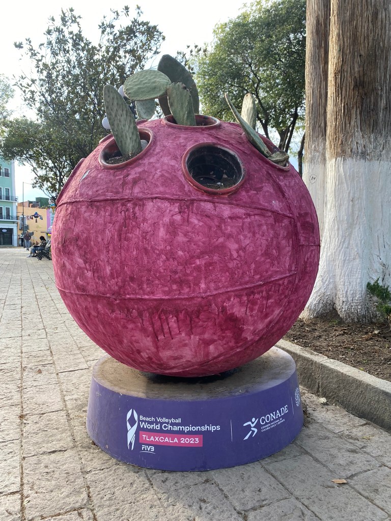 Anschließend haben wir einen kleinen Spaziergang durch den Zocaló gemacht und sind dort auf reichlich Weihnachtsdekoration, aber auch auf diverse Steinkugeln gestoßen die hier Rahmen der im Jahr 2023 in Tlaxcala ausgetragenen Beachvolleyball Weltmeisterschaft aufstellt wurden. Rein aus Interesse habe ich mal nachgeschaut wer das Turnier gewonnen hat. Bei den Männern gewannen die Tschechen und bei den Damen die USA.
