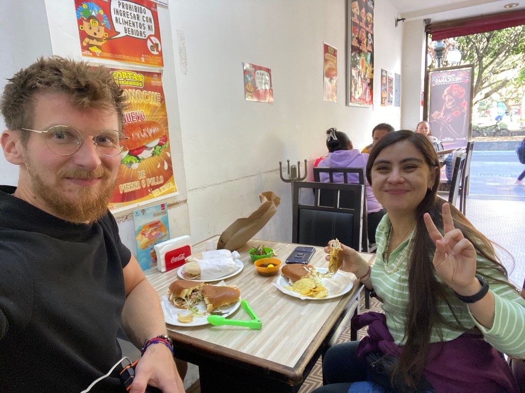 Auf dem Weg ins Zentrum sind wir noch durch eine kleine Einkaufsstraße geschlendert und sind dann am Parque Castillo, dem zentralen Platz in Orizaba angekommen. Hier gabs erstmal ein ausgiebiges Frühstück im Restaurant Tortas Pavitos. Für alle die es nicht wissen, Tortas sind in Mexikos ganz gewöhnliche Sandwiches nur halt im mexikanischen Style.