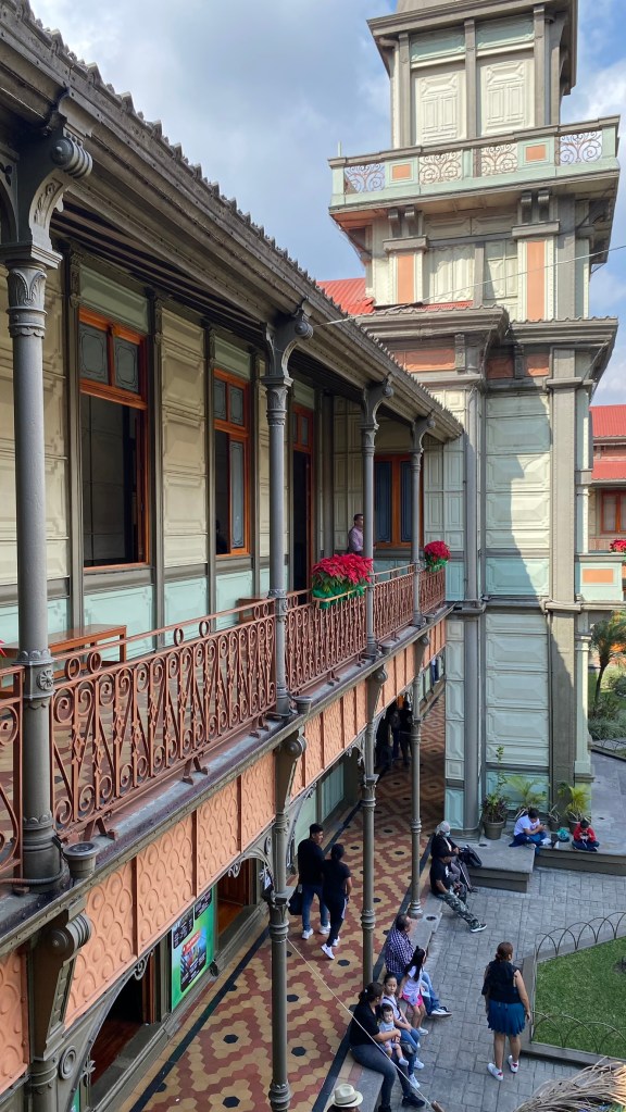 Unsere erste Station hier im Zentrum war der Eisenpalast von Orizaba (spanisch: Palacio del Hierro de Orizaba). Das besondere an diesem Palast ist, dass er vollständig aus Eisen und ein paar Holzkonstruktionen besteht. Im Jahr 1891 gab die Stadt Orizaba den Bau dieses Palastes bei der die belgischen Société Anonyme des Forges d’Aiseau in Auftrag. Der vollständig zerlegbare Palast wurde vom Belgier Joesph Danly konzipiert und die insgesamt 3369 Pakete plus Metallkonstruktion wurden per Schiff vom Hafen von Antwerpen in 3 Ladungen nach Veracruz verschifft. 1894, also 3 Jahre nach Anlieferung, wurde die Konstruktion fertiggestellt und gemeinsam mit den Feierlichkeiten zur Unabhängigkeit Mexikos am 16. September eingeweiht. Der Palast diente fast 100 Jahre lang als Gemeindesitz der Stadt und wird heutzutage als Gebäude für 6 verschiedene Museen und als Tourismusbüro verwendet.