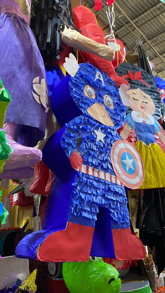 Unsere letzte Station für heute in Orizaba war der Wanderweg der 500 Stufen (Paseo de los 500 Escalones), welcher etwas außerhalb der Stadt gelegen ist. Hierbei handelt es sich um kleinen Wanderweg mit einer großen Treppe, die aber eigentlich nur 250 Stufen hat. Da man sie aber in den meisten fällen einmal runter und wieder raufgehen wird, kam sie so zu ihrem Namen. Wir wollten den Weg zu den Treppen nutzen, um die Stadt noch weiter zu besichtigen und sind auf Weg dorthin unter anderem am Mercado Melchor Ocampo vorbeigekommen und konnten hier Pinatas in unterschiedlichsten Formen und Farben bestaunen. Von Minions über Captain Amerika, dem Grinch bis hin zu Tequila-Flaschen war hier alles mögliche zu finden.