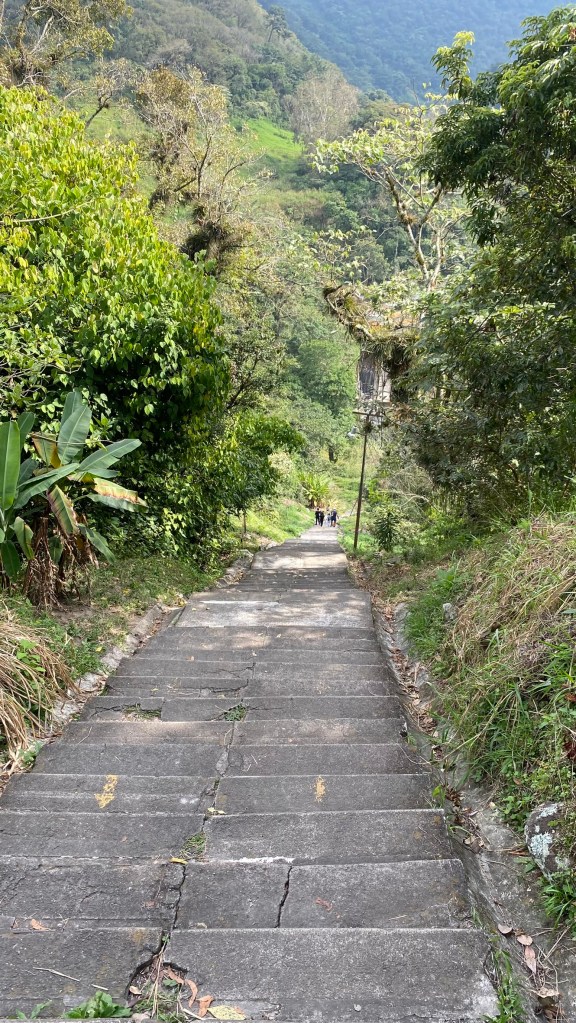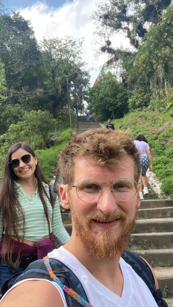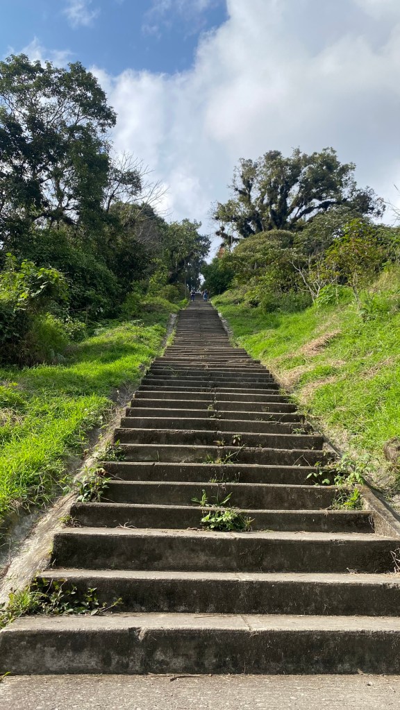 Nach knapp 20 Minuten zu Fuß haben wir gemerkt, dass unser Ziel doch etwas zu weit entfernt ist, um die gesamte Strecke zu Fuß zurückzulegen und sind daher spontan in einen Bus gesprungen, welcher uns etwas näher an unser Ziel gebracht hat. Nach einem weiteren kurzem Fußmarsch durch einen etwas abgelegeneren Stadtteil der Stadt waren wir dann endlich da. Hier merkten wir, dass wir bereits am oberen Ende der Treppe angekommen sind und jetzt schon einen tollen Ausblick auf die Berge bekommen konnten. Wir haben uns hier kurz aufgehalten und sind anschließend die 250 Stufen heruntergestiegen. Uns ist in dem Moment klar geworden, dass er Aufstieg zurück ziemlich hart werden wird, da die Stufen doch sehr steil waren.