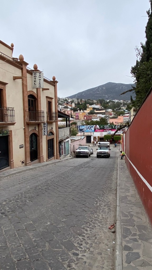 Am Folgetag, dem 31.01.24 bin ich in das nicht weit entfernte San Miguel de Allende gefahren. Obwohl San Miguel nur etwa 2 Stunden Busfahrt von Santiago de Querétaro entfernt ist, liegt es bereits nicht mehr im Bundesstaat Querétaro, sondern im Staat Guanajuato. Ich wollte hier nur einen Tagesausflug machen, da mir gesagt wurde, dass ein Tag ausreicht, um die Stadt ausgiebig zu erkunden. Ich wollte daher das Zentrum anschauen, Märkte besuchen, etwas durch die schicken Gassen der Stadt spazieren und gegen Ende zu einem Aussichtspunkt gehen.