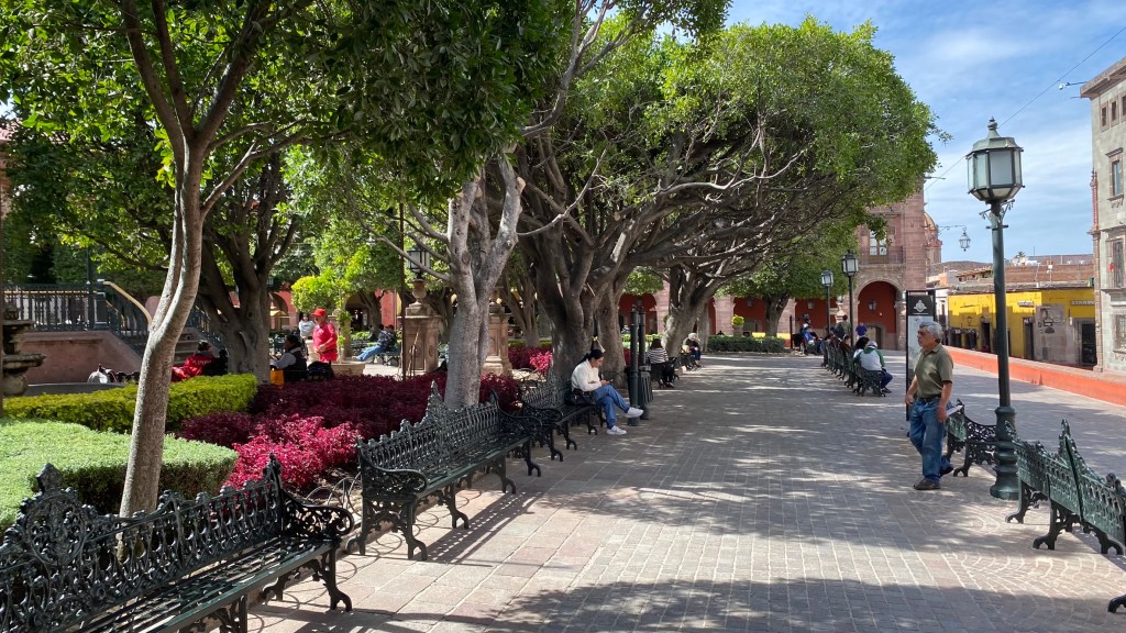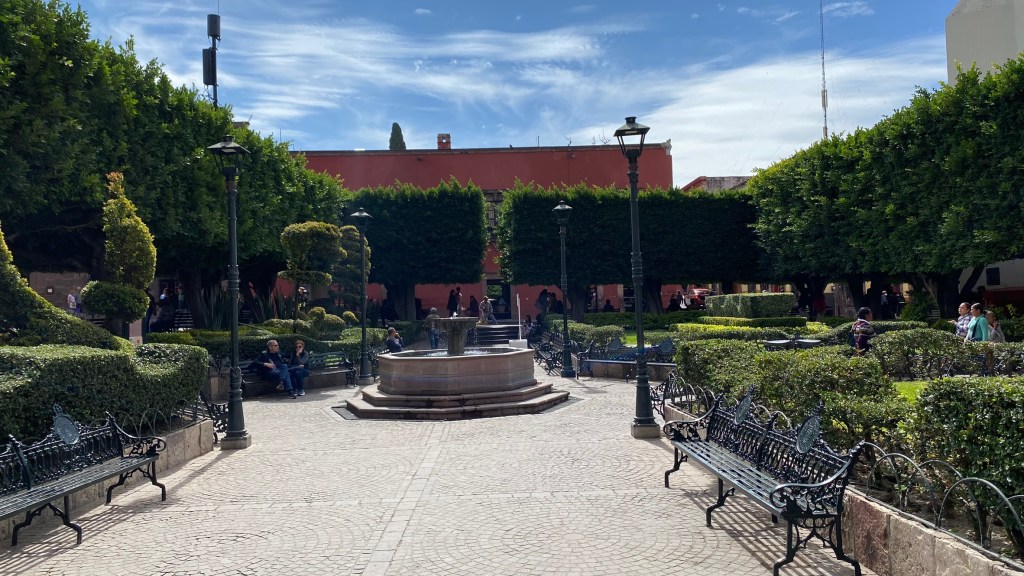 Direkt vor der Parroquia befindet sich der Hauptplatz der Stadt, der Jardín Allende. Hier kann man entspannt ein bisschen Zeit bei einem Kaffee oder Restaurantbesuch verbringen. Der Platz ist wirklich schick und gut gepflegt und sehr belebt. Das gilt auch für den Rest der Stadt. San Miguel ist meiner Wahrnehmung nach wirklich sehr schick. Es liegt kaum Müll herum und die Grünanlagen sind sehr liebevoll gestaltet.