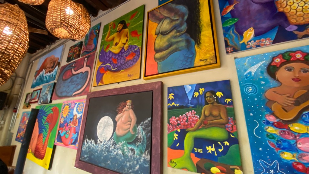 Nach ein paar Minuten wurde ich dann auch schon fündig. In einer Seitenstraße nicht weit ab vom Zentrum fand ich das Café La Sirena Gorda was so viel bedeutet wie die dicke Sirene. Ganz im Sinne des Namens des Lokals fand man hier an den Wänden die entsprechenden Bilder.