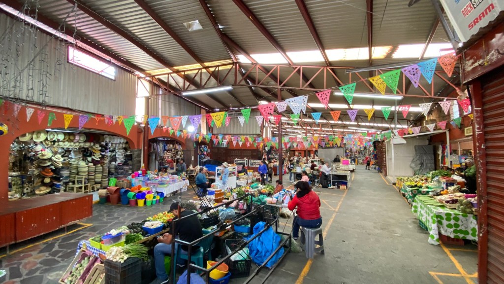 Um allerdings etwas günstiger zu essen, lohnt es sich eine Runde auf dem Mercado zu drehen. Hier gehen viele Mexikaner zum Essen hin und man sieht auch deutlich weniger Touristen. Der Markt besteht aus zwei Bereichen: Auf der einen Hälfte des Marktes werden Souvenirs und handgefertigter Schmuck, Küchenutensilien sowie Lebensmittel verkauft.