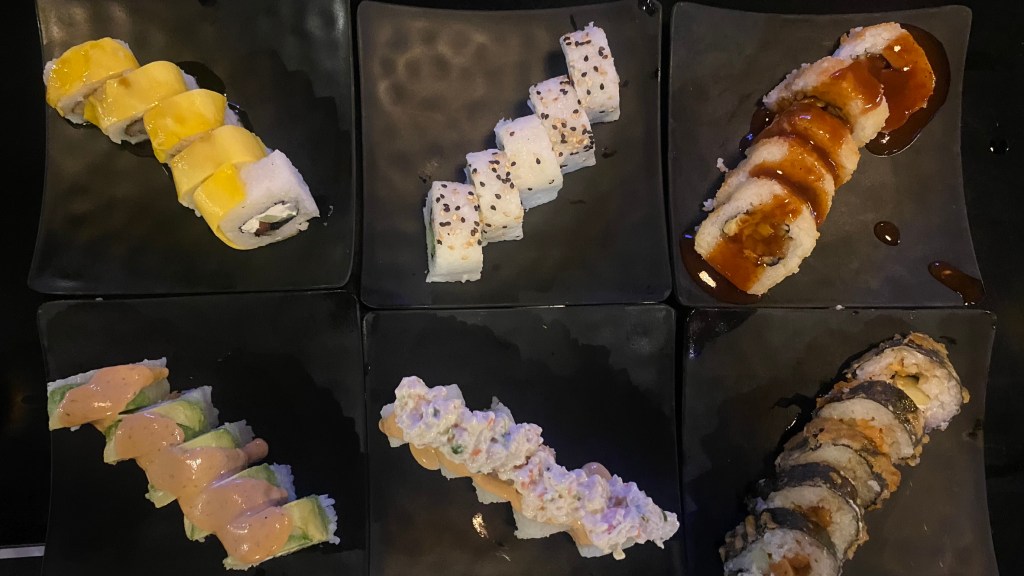 Mit der U-Bahn kehrten wir zu unseren Unterkünften zurück. Wir verabredeten uns dann noch zu einem gemeinsamen Abendessen in einem Sushi-Buffet. Dieses Restaurant war einer der Tipps von meinem Fahrer, mit dem ich von Silao nach Mexico City gefahren bin. Gegen 20:00 Uhr fanden wir uns im Sumo Sushi Buffet in Condesa ein. Für gerade einmal 229 Pesos kann man hier so viel Sushi, Burger, Hotdogs, Chicken-Wings und weiteres essen wie man möchte. Und einen Haken hat das ganze eigentlich nicht. Die einzige Bedingung war, etwas von der Getränkekarte zu bestellen. Und da hat ein einfaches Bier für 50 Pesos ausgereicht. Also echt wirklich fair und das Essen war auch wirklich gut. Ich kann dieses Restaurants jedem empfehlen, der Bock auf Sushi hat und viel essen kann. Hier ein paar Bilder vom Sushi: