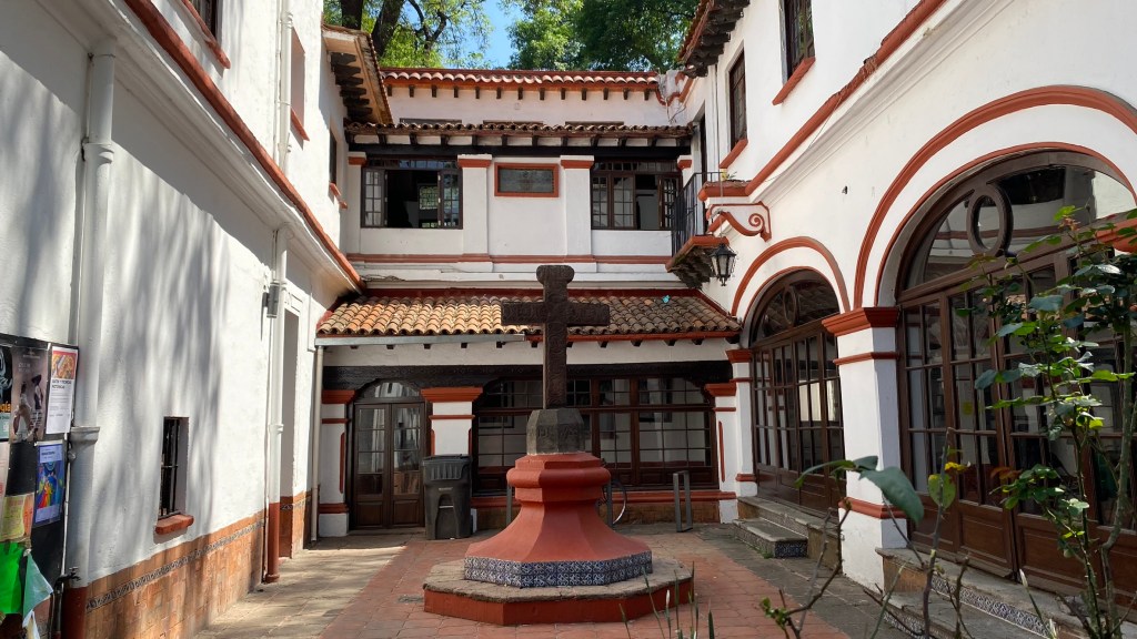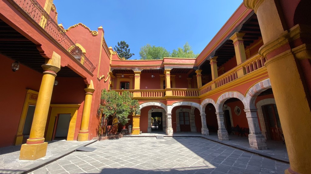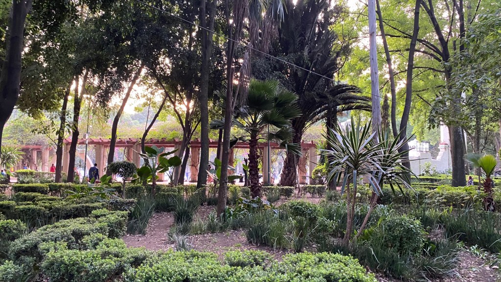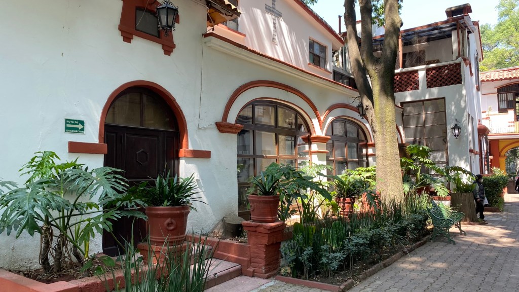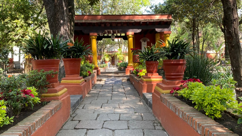 Als erstes machten wir einen kurzen Stopp im Casa Alvarado. Das Besondere an diesem Haus ist, dass sich hier die nationale Klangbibliothek Mexikos befindet. Sie enthält eine einzigartige Sammlung der Musik, Aufnahmen und sogar der Stimmen ihrer berühmtesten Bewohner. Wir hielten uns allerdings lediglich im Garten auf und hörten unserem Guide bei seinen Ausführungen zu.