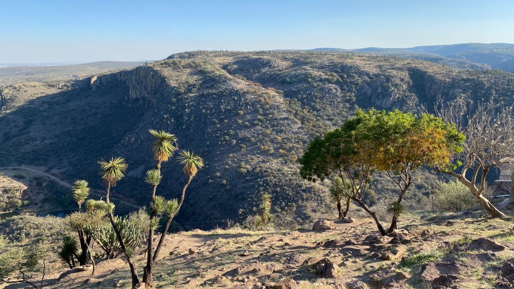 Vorher machten wir aber noch einen kurzen Abstecher zum Weingut Hacienda de Letras ganz in der Nähe von Aguascalientes. Dieses Weingut kann auf über 40 Jahre Winzer-Tradition zurückblicken. Hier werden über 18 verschiedene Weinsorten auf knapp 120 Hektar angepflanzt. Man kann hier Führungen buchen oder die Anlage für Events wie Hochzeiten buchen. Wir wollten lediglich eine kleine Runde drehen und uns das Gelände anschauen. Die Hacienda ist wirklich schick. Es gibt viele Grünflächen und mehrere Möglichkeiten seinen Wein zu genießen. Wir blieben hier knapp 20 Minuten und machten uns dann weiter auf den Weg nach San José.