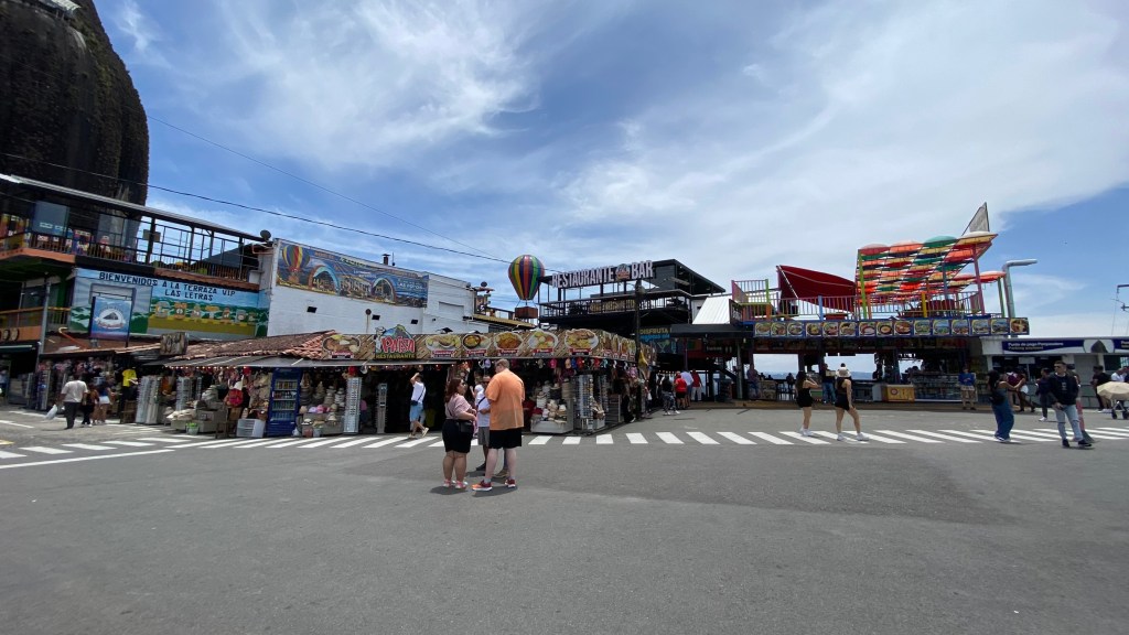 Es gibt außerdem Stände, an denen man sich eine Erfrischung gönnen kann. Ich gönnte mir eine Michelada und machte mich nach einer knappen halben Stunde wieder auf den Weg nach unten. Runter ging es dann um einiges schneller. Ich begab mich zurück zur Bushaltestelle, um von dort aus einen Bus in das Dorf zu bekommen. Auch hier kann man die bequemere Variante nehmen und einfach in ein Tuk-Tuk steigen. Für die knapp 5-minütige Fahrt wollten die Fahrer aber 15.000 Pesos von mir haben und ich wartete ein paar Minuten auf den nächsten Bus nach Guatapé der mich nur 2000 Pesos kostete.