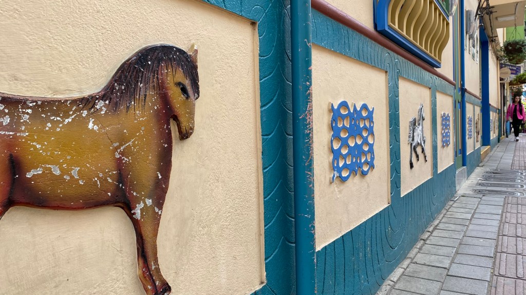 Im Dorf angekommen spazierte ich gleich los in die ersten Gassen und konnte mir ein erstes Bild von den farbigen Straßen machen. Es sieht hier wirklich ganz schick aus. Auffällig waren in der Tat die ganzen Verzierungen auf den Hauswänden.