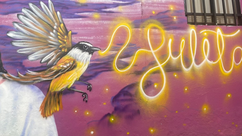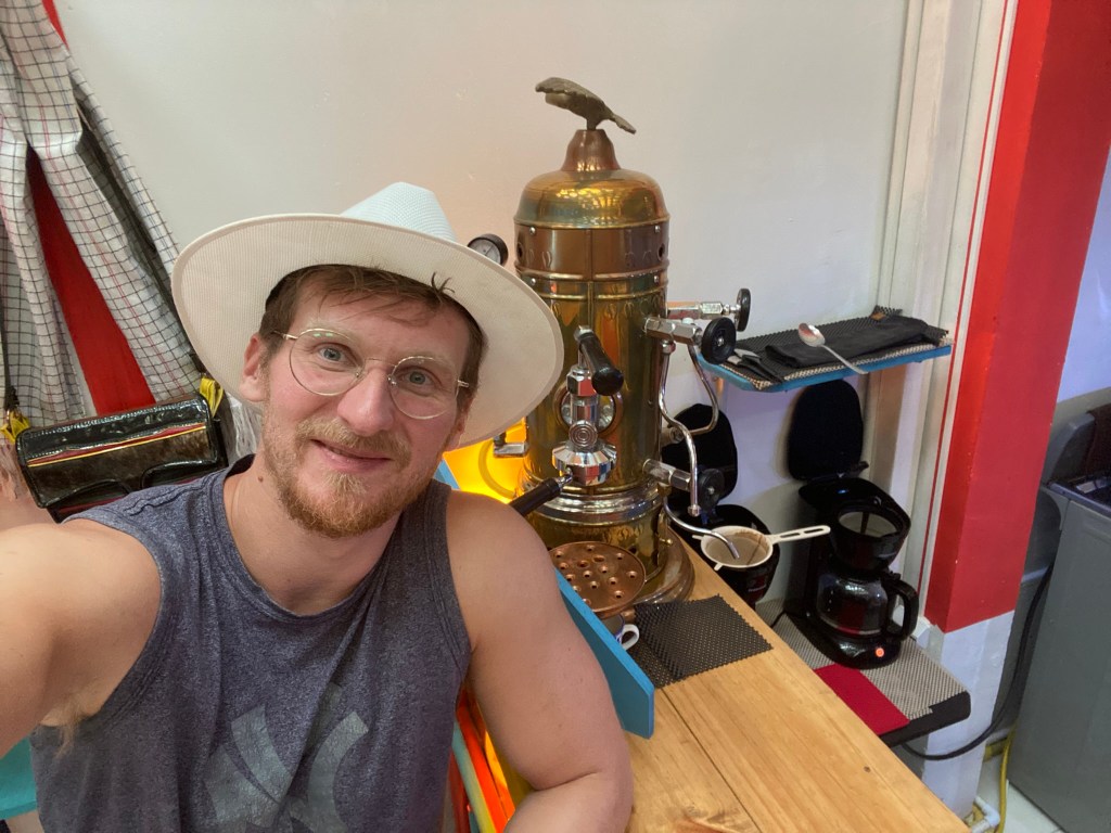 Ich schlenderte also durch die Straßen und dachte mir, dass ein Kaffee doch jetzt ganz schön wäre. Immerhin war ich jetzt schon eine Weile unterwegs und das Einzige was ich mir bisher gönnte war die Michelada auf dem Felsen. Ich entdeckte eine schicke Gasse und entschied mich dort einzubiegen. Ein nettes Paar half mir dabei ein Foto zu machen.