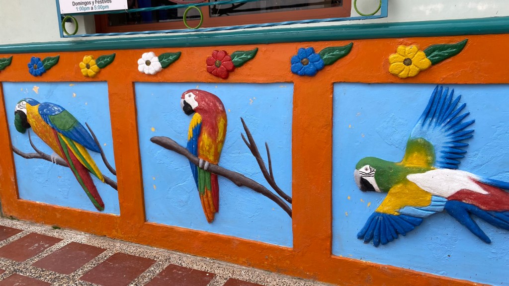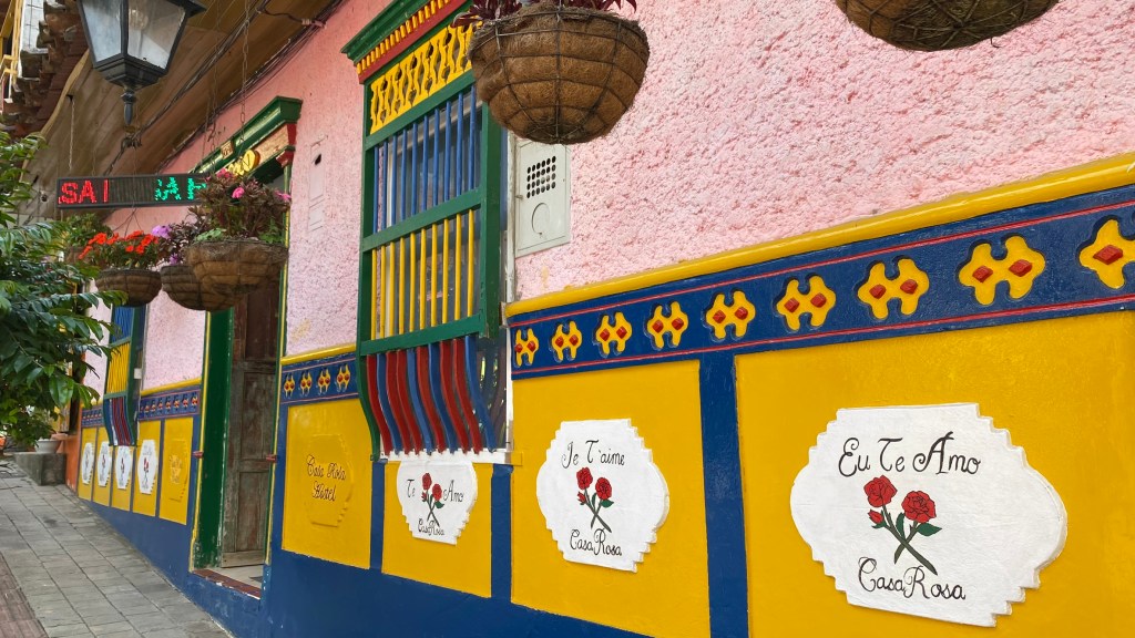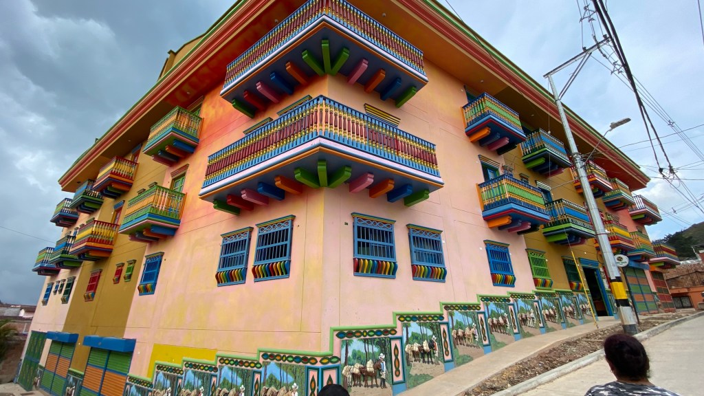 Guatapé liegt etwa 80 km östlich von Medellín und hat circa 7000 Einwohner. Also wirklich ein kleines Dörfchen. Heute ist Guatapé bekannt für seine bunten Häuser, seine reiche Geschichte und seine malerische Landschaft. Viele Häuser sind mit aufwändigen Fresken und farbenfrohen Verzierungen geschmückt, die die Geschichte und Kultur der Stadt widerspiegeln. Ich habe natürlich so viele Ecken wie möglich für euch fotografiert, um euch einen Eindruck davon zu vermitteln, wie es dort aussieht.