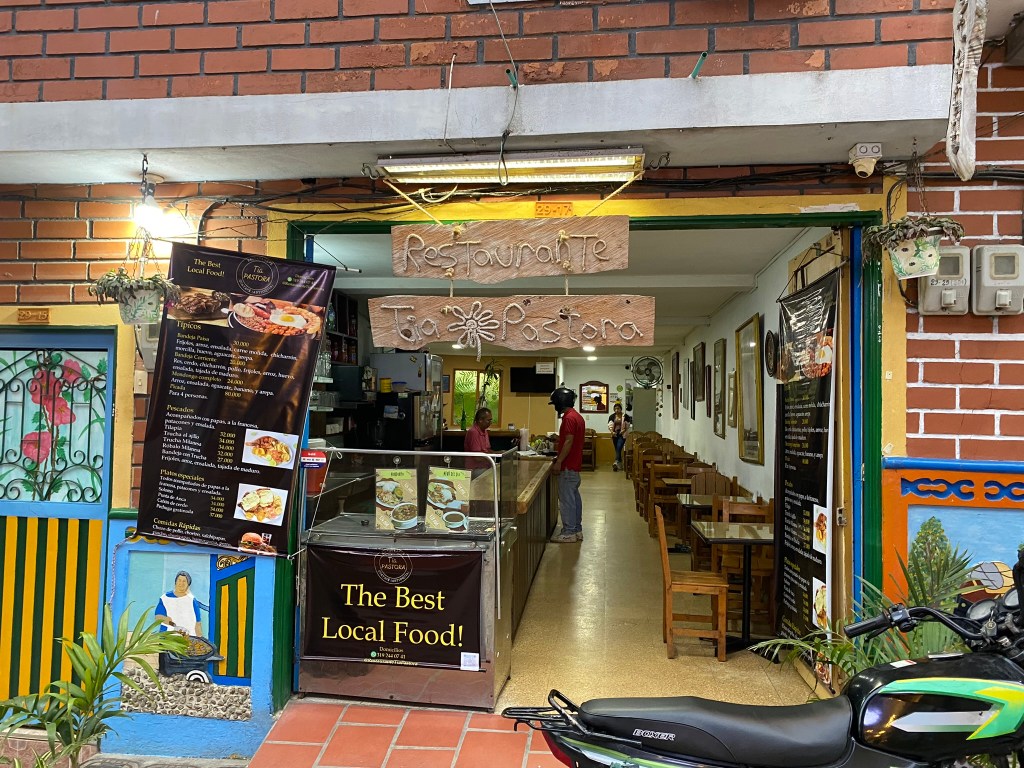 Im Restaurant Tia Pastora bestellte ich mir eine Bandeja Paisa, das Traditionsgericht aus Medellín. Das ist eine große Platte mit verschiedenen Fleischsorten (in meinem Fall Hackfleisch), Chorizo, Reis, Salat, Bohnen, Avocado, Ei, Arepa und frittierter Banane. Für alles zahlte ich hier knapp 40.000 Pesos. Mit der Zeit entwickelte sich die Bandeja Paisa zu einem meiner Lieblingsgerichte, da man auf jeden Fall satt wird und mir die Kombination der verschiedenen Zutaten echt gut gefällt.