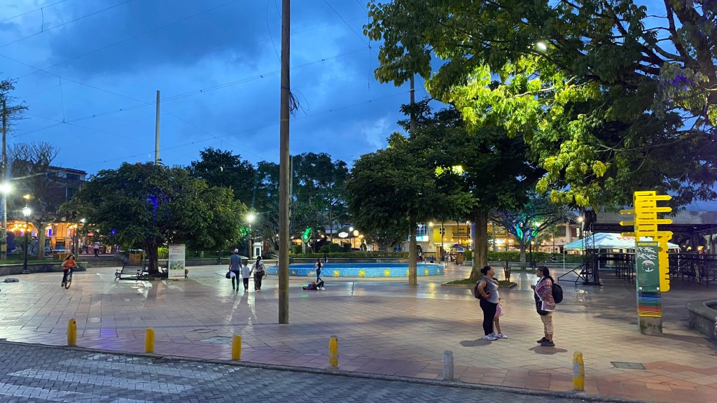 Nach dem Essen drehte ich noch eine kleine Runde im Stadtzentrum und genoss die gemütliche abendliche Atmosphäre am Parque Principal de Guatapé.